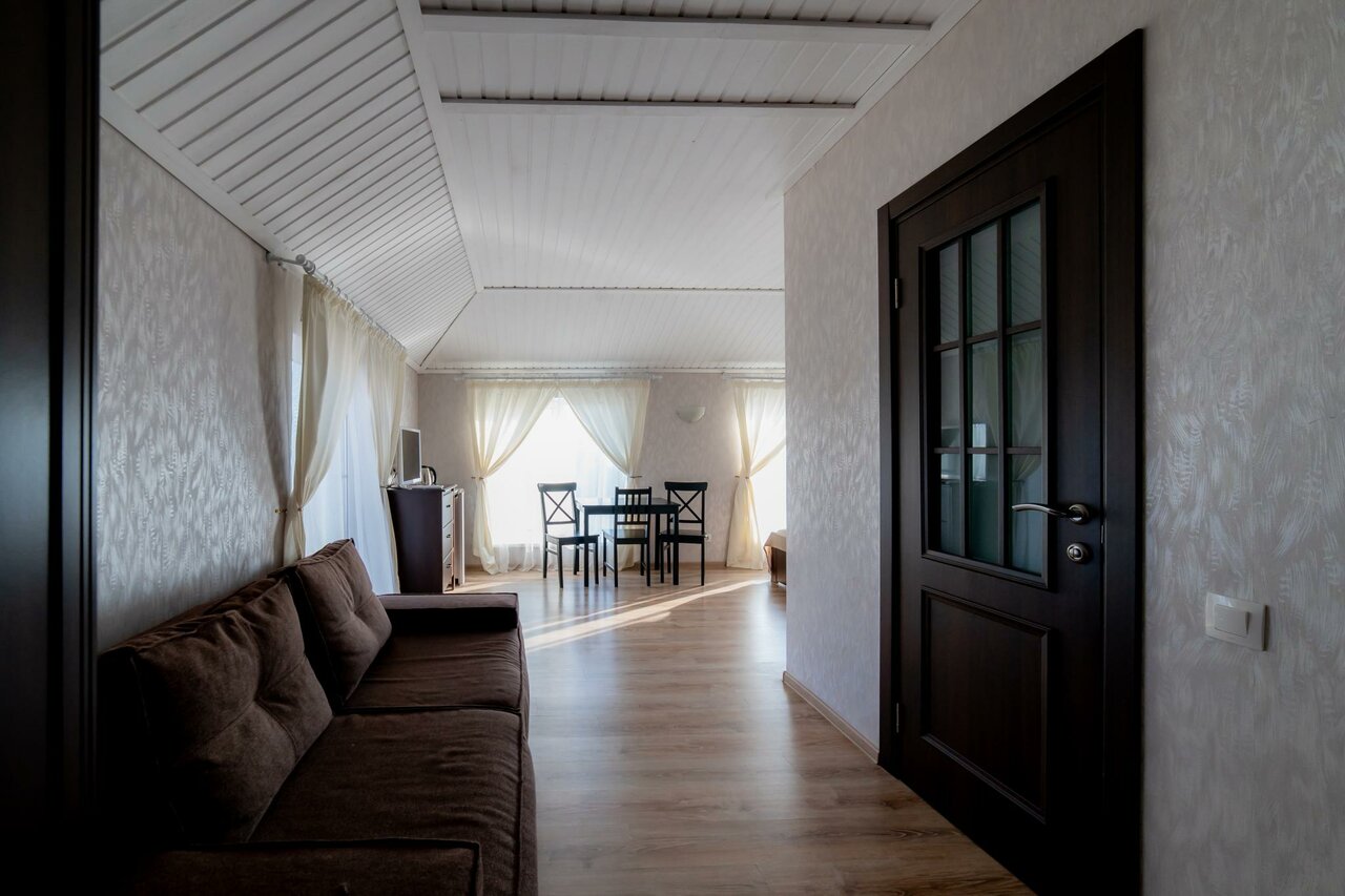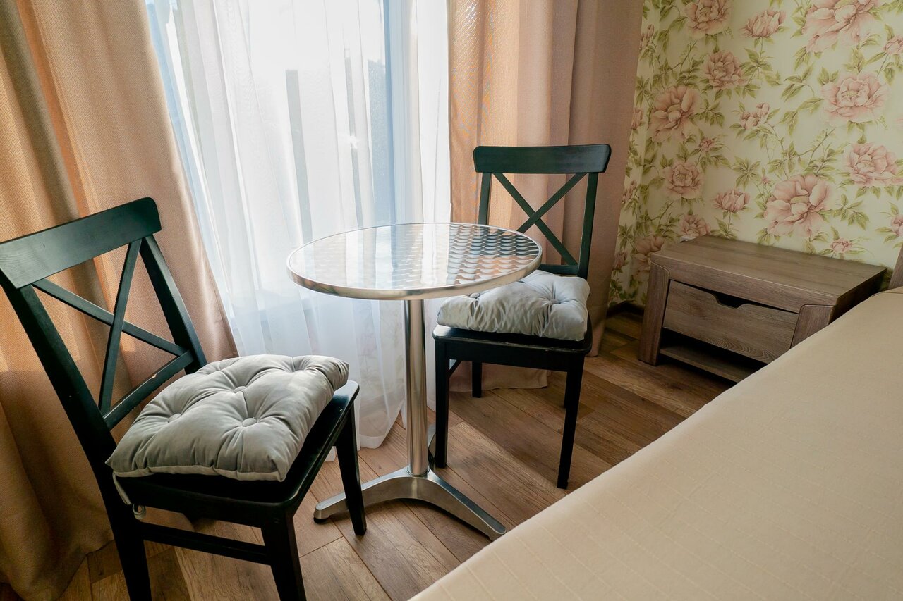 Особенности: — Общий туалет, санузел в номерах, душ, фен, утюг. — Нет бассейна, сауны, детских кроватей и зонтов от солнца. — Заселение с 14:00, выезд до 12:00.