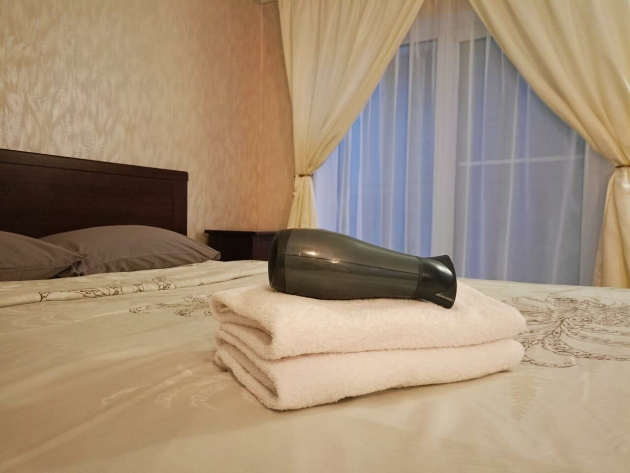 Отличный отель! Удобно расположен, 200 метров от пляжа Алексино (очень чистый, вода прозрачная). Рядом Магнит, столовые, пиццерия. Номер удобный, большой, В номере ТВ, кондиционер, холодильник, очень просторная ванная комната с сушилкой для белья. Приятные, обходительные сотрудники на ресепшене. Если ещё раз приедем в Новороссийск, то жить будем здесь.
