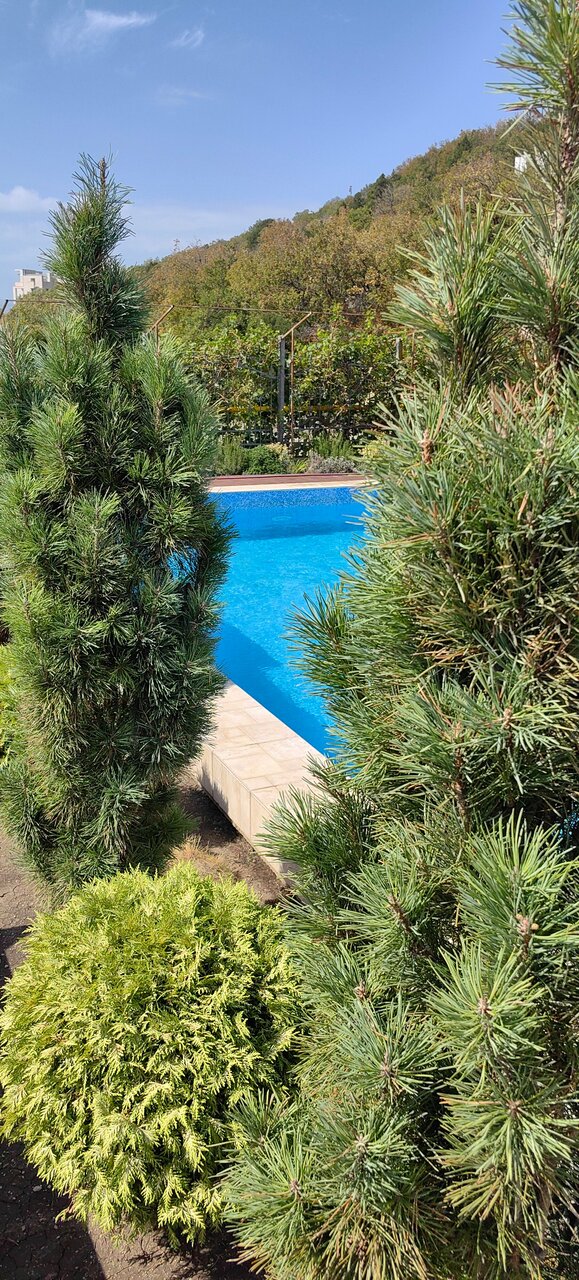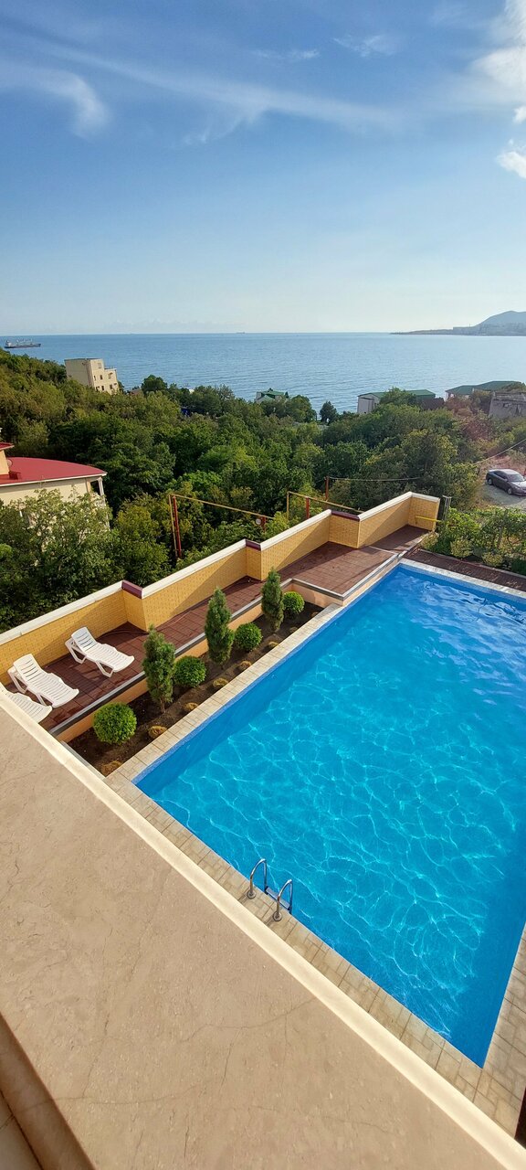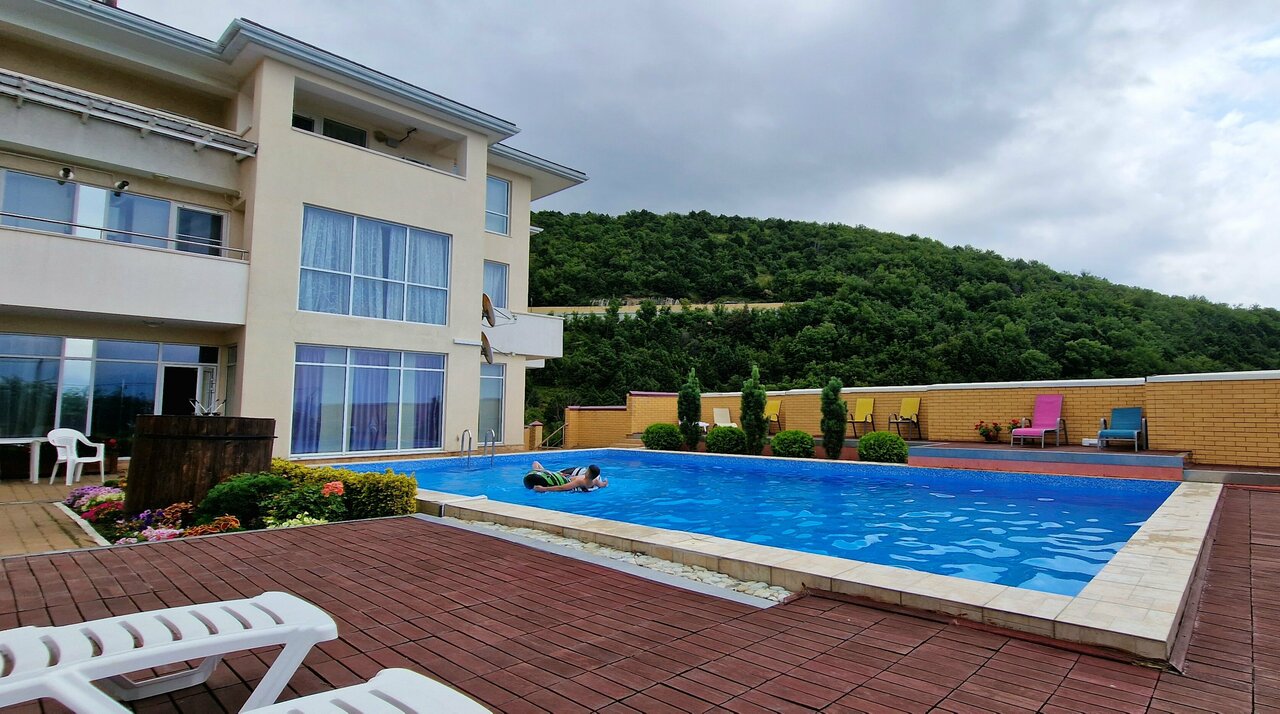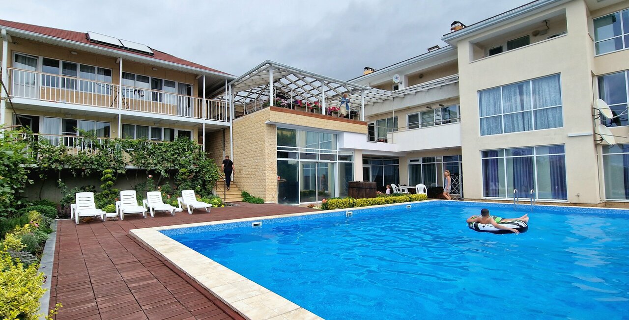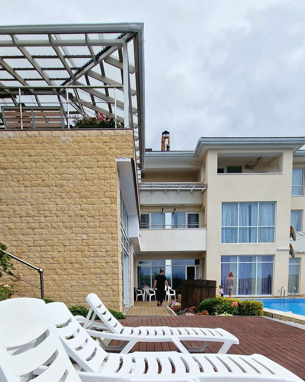 Отличный тихий отдых. Хорошие номера, бассейн, на море частный пляж. С мангальной площадки прекрасный вид на море!