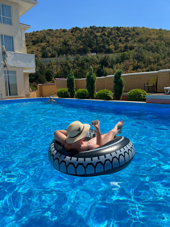 Оттличное место для максимально спокойного отдыха на море. Тихо, не ходят люди туда-сюда. Можно отдохнуть в бассейне, можно пойти к морю, дадут ключ от пляжа!. Он из камней, так что лучше купаться в обуви. Приезжать удобнее всего на машине, так как это место в стороне от населённых пунктов, заезд с трассы очень резкий, очень легко пропустить или угодить в овраг. Из минусов это дорога к парковке — каменистая и заросшая по краям травой и кустами, хотя к концу отдыха всё срезали. Номера приличные, со всеми удобствами. Есть возможность заказывать завтрак, обед, ужин, но мы предпочитали есть в других местах. На машине можно отправиться в Новороссийск, Кабардинку, Геленджик, Абрау-Дюсро, даже в Анапу, погулять на денёк, что и делали. Номера с видом на море, очень красиво.