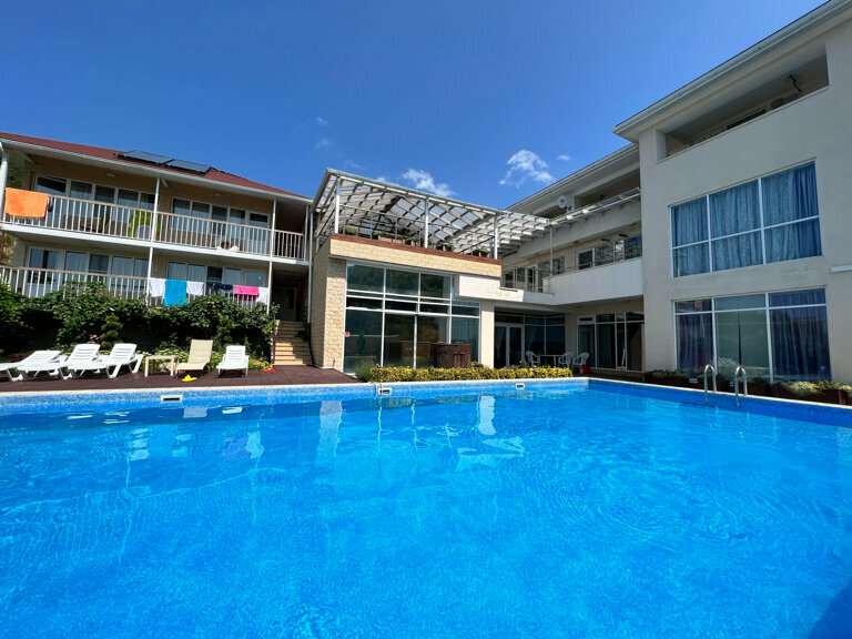 Отдыхали семьей пару лет назад. Много плюсов. Отличный отдых, если хочется убежать от суеты. Тихо. Спокойно. Пустой пляж, от которого у тебя есть свой ключик. Питание замечательное. По просьбе готовили отдельно для ребёнка, который малоешка и кушает выборочно. Бассейн !!! Но территории практически нет. Но вокруг бассейна много цветов и зелени. Есть мангальная зона с потрясающим видом на море. Но. Единственный минус для нас — это морское дно. Скользко. И огромные камни в водорослях. Заходить было неприятно. Пришлось купить матрас и на нем заплывать на глубину. Купались в море раз пять за неделю. В основном в бассейне. Рядом Новороссийск и Кабардинка. Минут 15-20 на такси — и цивилизация с толпами людей))). Всем приятного отдыха.