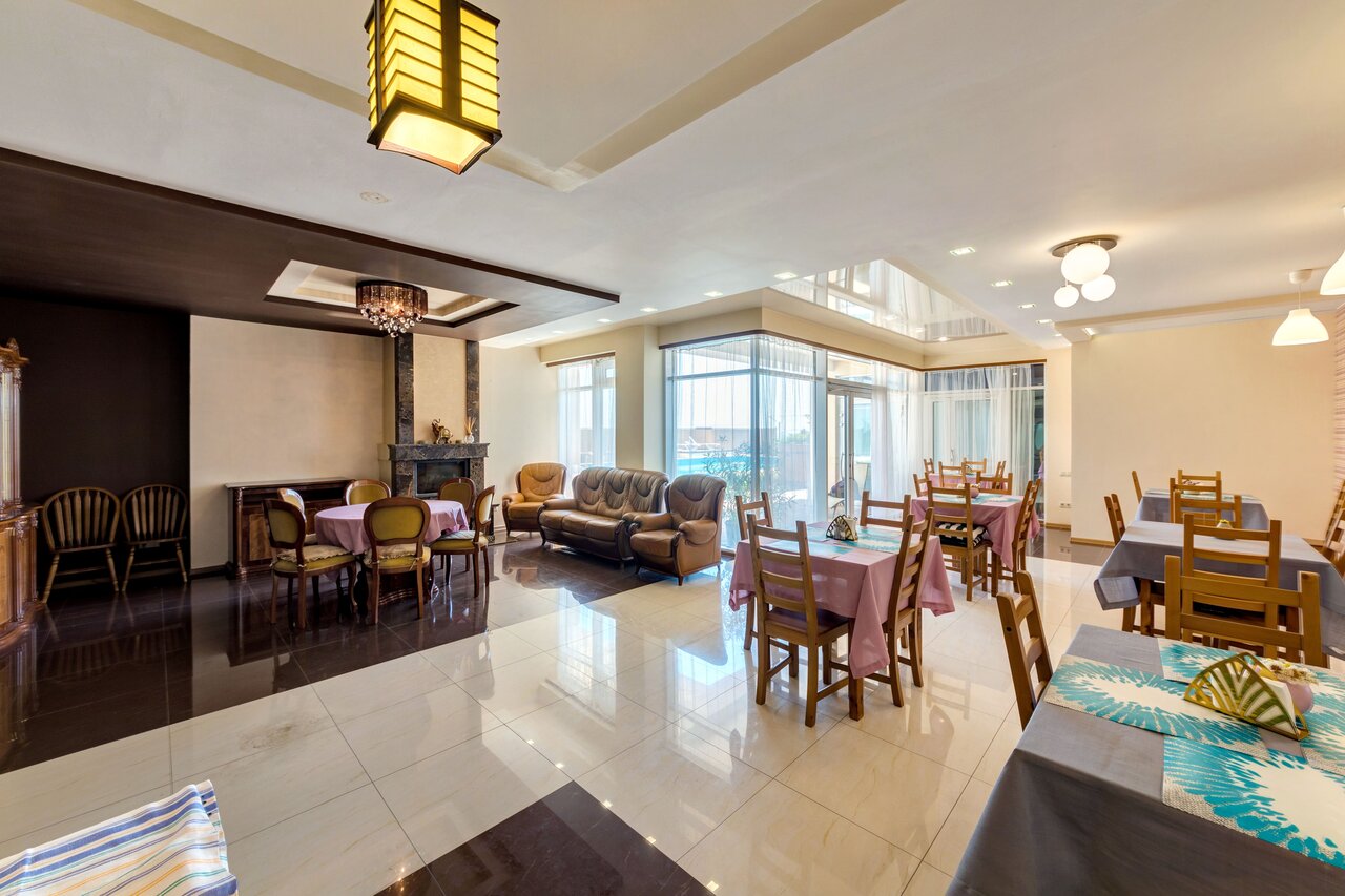 Плюсы: собственный пляж с чистой водой, но камни, заходить в море неудобно. Есть Мангальная зона, немного неудобная, но всё же. По питанию мнение неоднозначное, один повар готовит вкусно, другой-на любителя. Но за десерты отдельное спасибо, вкусные! Детям на завтрак одна сосиска и два колечка огурца,ну так себе.. Минусы: плохая дорога к отелю, неудобно выезжать на главную дорогу, в пешей доступности нет ни одного магазина, только на авто,либо доставка,которая приезжает через 4-5 часов. Питьевую воду можно только набрать из кулера во время приема пищи,и только для чая, больше нельзя, берите с собой,кто собирается туда. Шезлонгов у бассейна мало и всем не хватает. Это основное, есть ещё небольшие + и — , но это индивидуально для каждого человека.