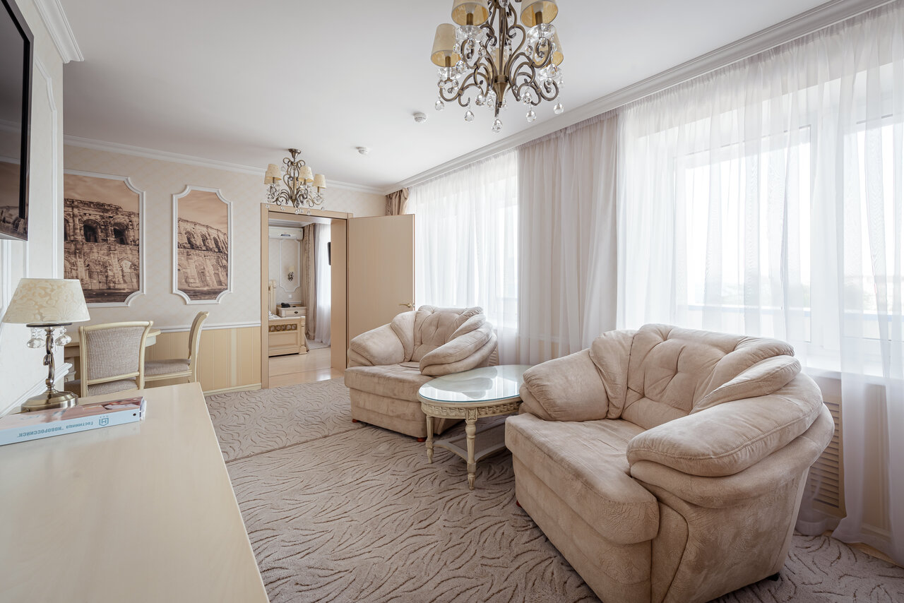 Гостиница категории 3 звезды предлагает комфортные номера с кондиционером, санузлом, холодильником, телевизором, Wi-Fi и другими удобствами. На территории есть кафе, бизнес-центр, сауна (платно), салон красоты, конференц-зал и бильярд.