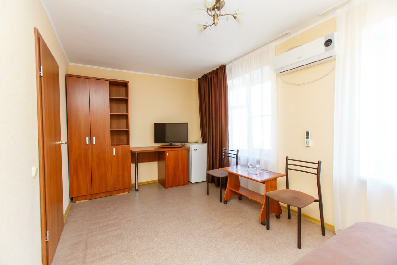 Одна односпальная кровать, диван, Wi-Fi, ТВ, санузел, холодильник, сплит система.Завтрак: 350 рублей/человек
