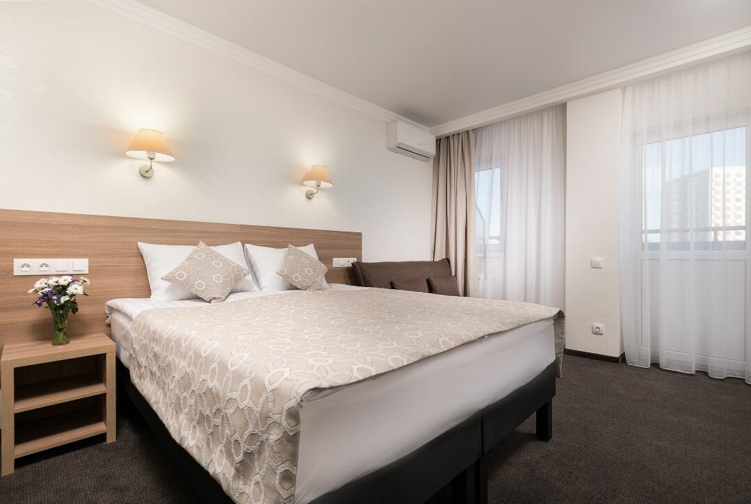Однокомнатный 2-х местный номер с большой двухспальной кроватью или 2 раздельные кровати. Площадь номера 16 кв.м.ЦЕНА ЗА НОМЕР В СУТКИ:1 человек - 4700 руб2 человека - 4700 руб3 человека - 5900 руб4 человека - 6600 руб