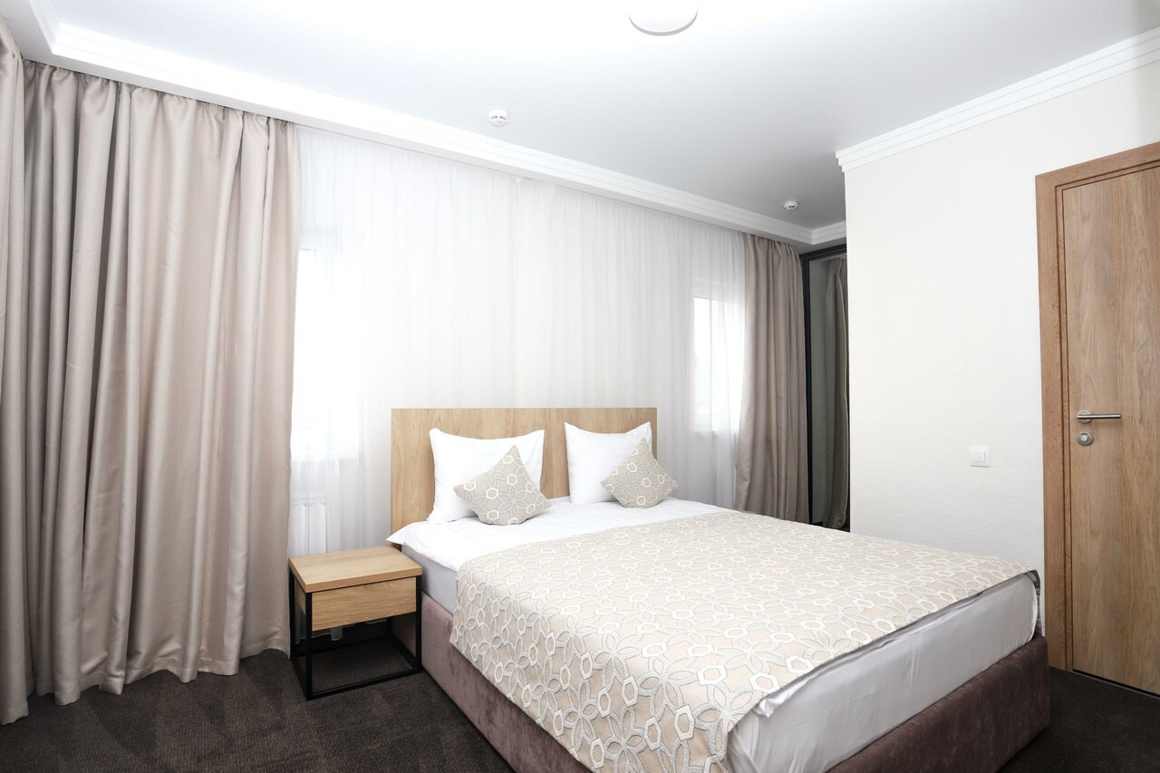 Однокомнатный 2-х местный номер с большой двухспальной кроватью или 2 раздельные кровати. Площадь номера 13 кв.м. Цена за номер в сутки: 1 человек - 4200 руб. 2 человека - 4200 руб.