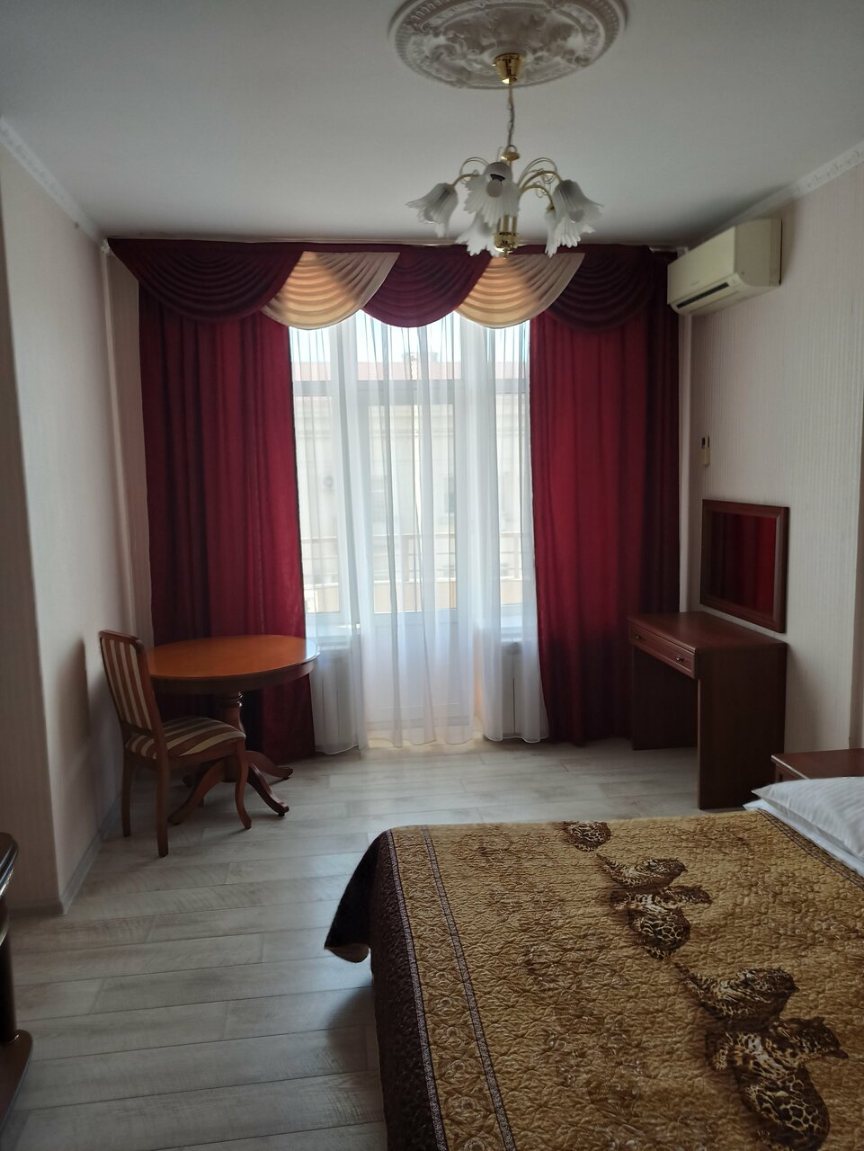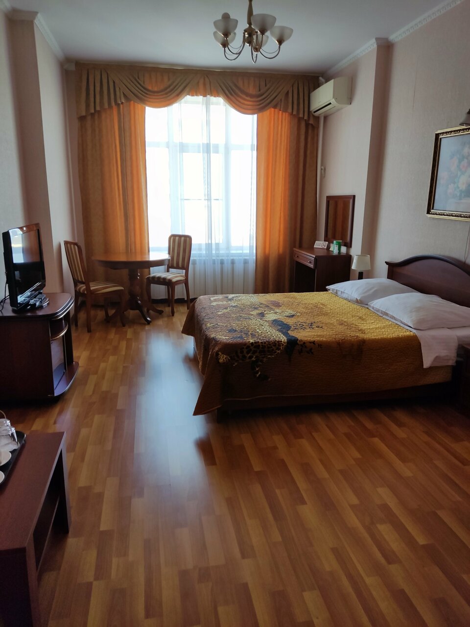 Отличный отель! Удобное расположение, бесплатно кормят неплохой едой и очень сытно. В итоге не тратились на кафе и рестораны, что экономит столько же сколько и сам отель стоит в сутки. По городу везде ходили пешком, из-за того что всё на расстоянии не более 700 метров. Немного опаздывали с выездом, поскольку очень сильно задержали в банке, в итоге персонал очень спокойно отреагировал, что радует.
