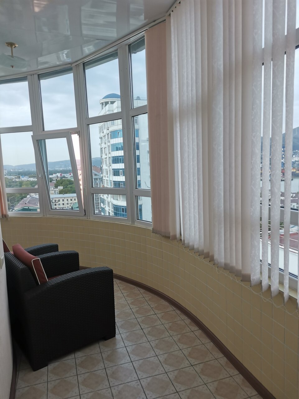 Просторный двухкомнатный номер с большим панорамным балконом.