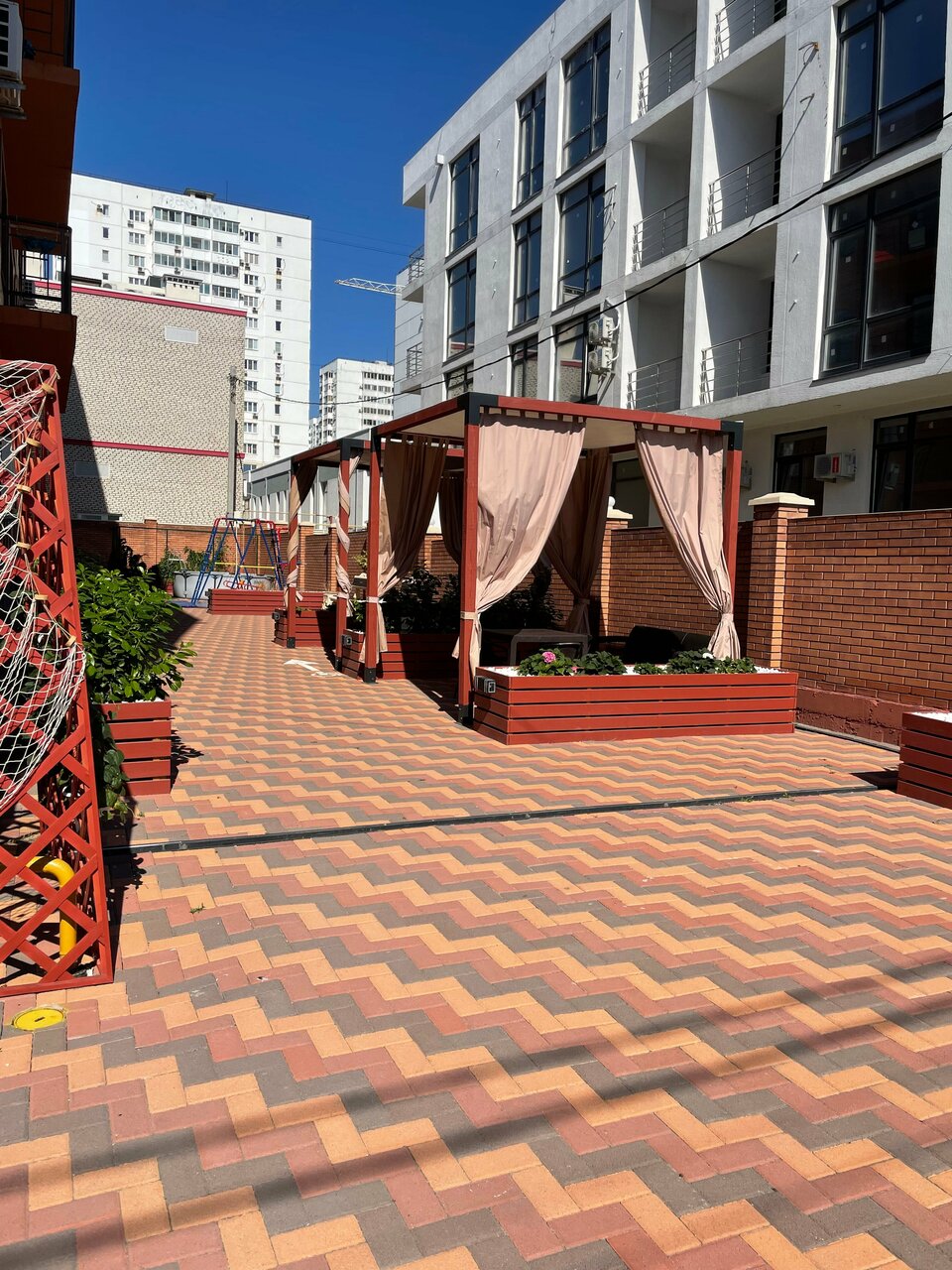 Отдыхали в данном отеле всей семьёй с 09.06.2024г. снимали два номера, однокомнатный и двухкомнатный Делюкс, номера как отдельные квартиры в номерах всё есть от зубной щетки до стиральной машины, персонал отличный и отзывчивый,везде чисто, что в номерах, что на территории ,есть площадка для детей места для отдыха, есть не большая мангальная зона,нам всё понравилось.