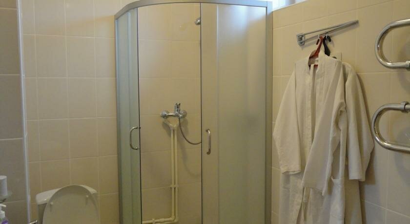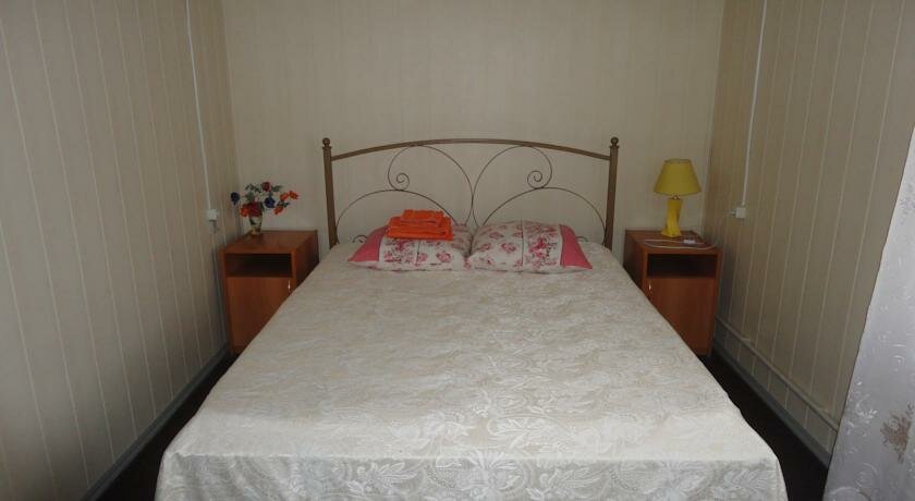 Как буд-то щитовой дачный дом, только с большим количеством комнат. В коридоре из каждой комнаты выходят трубы канализации и стоит постоянная вонь из канализации. В номере не было вешалок в шкафу, но по просьбе выдали. Телевизор не заработал, слабый сигнал. В ванной очень маленькая вешалка, повесили полотенца и негде было повесить вещи, чтоб принять душ, только на крышку унитаза. В ванной нет розетки, пришлось оттуда снять зеркало, поставить на холодильник и высушиться феном. А в остальном для того, что бы переночевать, достаточно. На общей кухне есть посуда, соль, сахар, чай, кофе, кулер с холодной и горячей водой, чайник. Видела, что стены тонкие, двери бумажные, но так устала, что спала, никого не слышала. Спасибо, бюджетная гостиница с минимально необходимым набором услуг.