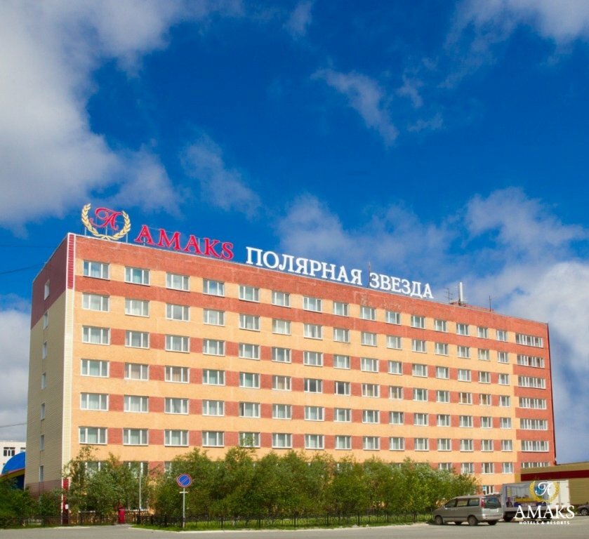 Амакс Полярная Звезда — трёхзвёздочная гостиница в центре Нового Уренгоя (Ленинградский проспект, 15Б). Открыта круглосуточно, предлагает номера от 3600 ₽/ночь с Wi-Fi, телевизором, санузлом и мини-баром. В отеле: ресторан, кафе, бар, платный трансфер, услуги прачечной и химчистки. Доступны варианты питания (завтрак, полупансион, полный пансион). Разрешено проживание с животными (платно). Удобства: лифт, камера хранения, консьерж-сервис, круглосуточная стойка регистрации.