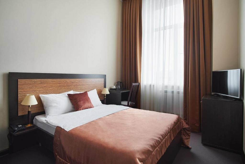 Гостиница комфортная ,прилично кормят. Отсутствует лифт, на 3 этаж тащишь чемоданы. В ресторане уютная обстановка, отсутствует алкоголь, вообще. 7500 за стандарт ,- явно не соответствует.