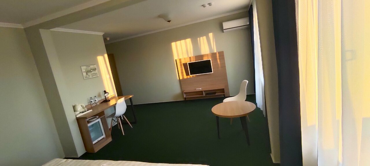 В целом норм. Убрать все минусы и будет отличный отель Плюсы: 1. Персонал 2. Удобные кровати и подушки 3. Чистота 4. Читали отзывы и думали, что будет холодно, но в номерах очень жарко. В столовой прохладно. 5. Тишина в отеле, народу не особо много 6. Такси ездит, всё ок. Недалеко конечная остановка автобусов. Минусы: 1. Вода, вода, вода. Со слов персонала, была авария и переподключили к другому водопроводу. Вода воняет ржавчиной, болотом. Зубы ей чистить невозможно(((да и мыться не особо приятно. За неделю правда привыкли. 2. Еда, то более менее норм, то отвратительная. У них идёт ремонт, возможно столовая откроется и будут готовить сами. 3. Почему-то не меняют полотенца, хотя жили неделю и за сутки до выезда не убирают, не пополняют туалетную бумагу. Жили на 3 этаже, на 4 меняли, но об этом узнали от коллег в день выезда.
