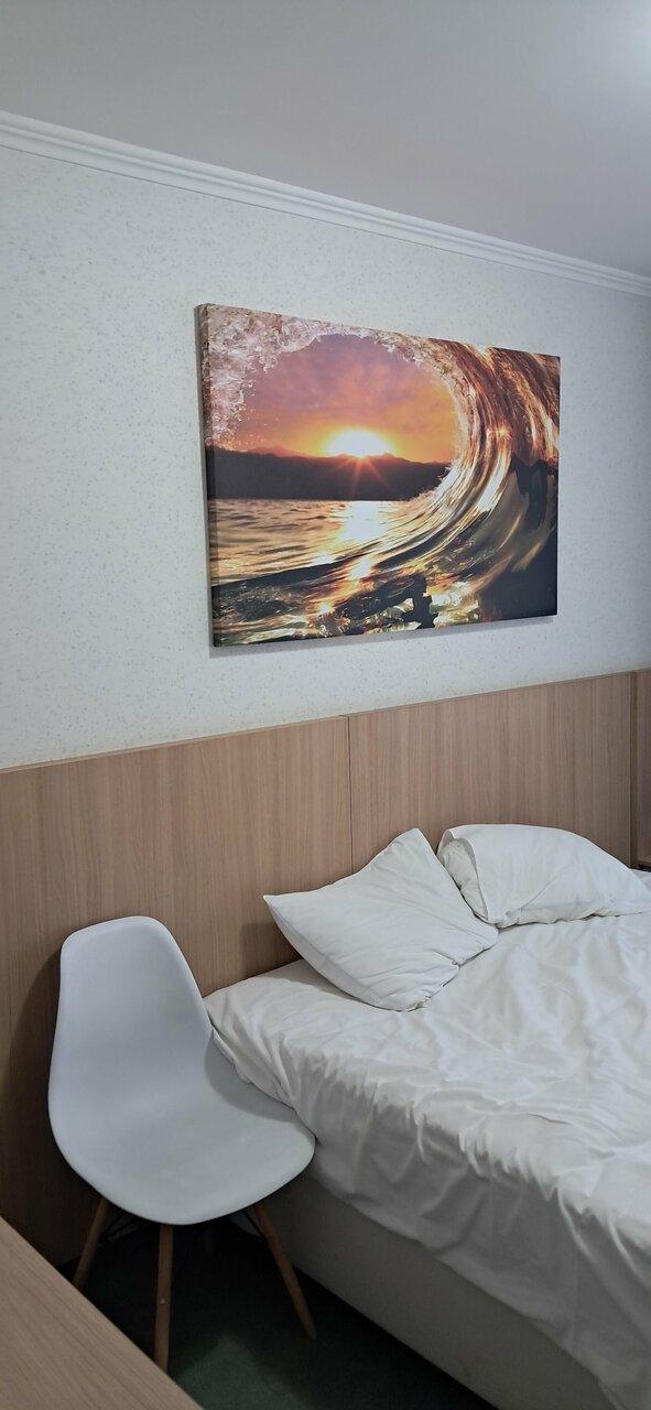 Холодно в любое время года батареи еле теплые. Полотенца влажные, вода вместо горячей тёплая и воняет жесть просто. Пока идёте на остановку или машина собьёт или собаки съедят, тротуара нет, идти нужно по дороге. Завтрак нормальный, но поздно с 7 утра хотелось бы с 6:30. Короче душегубка ещё та. Спал в термобелье и тёплых носках. Стульев нет ни одного