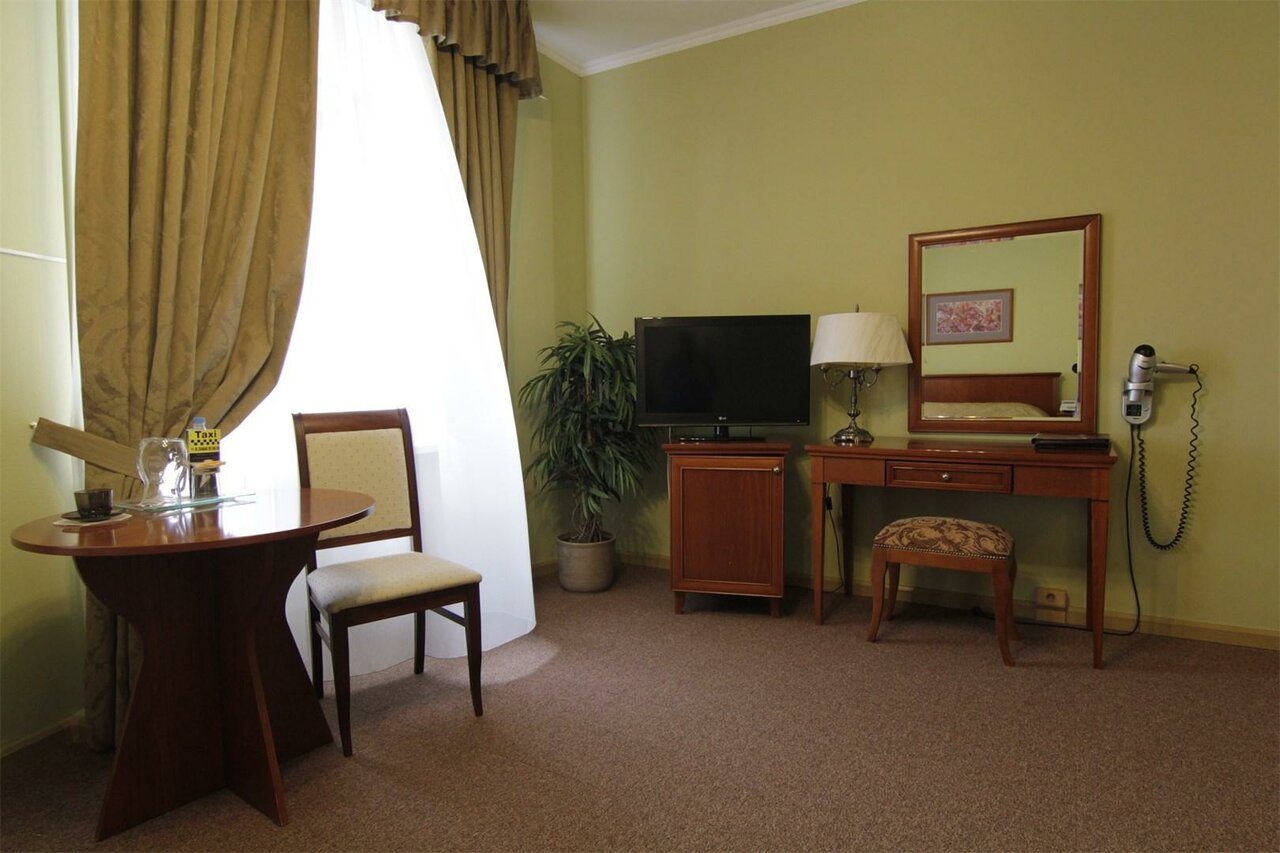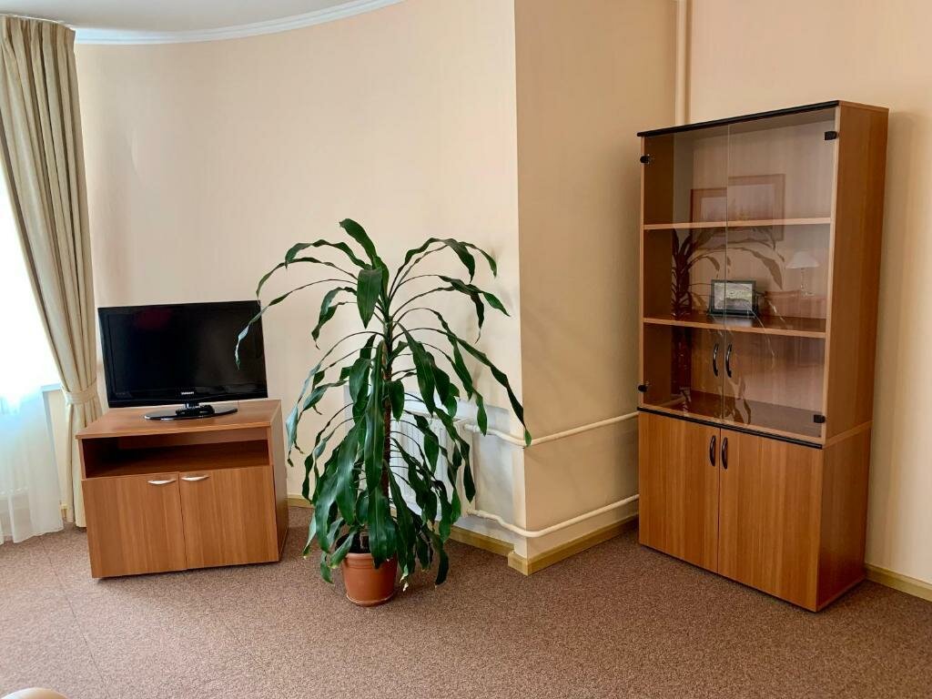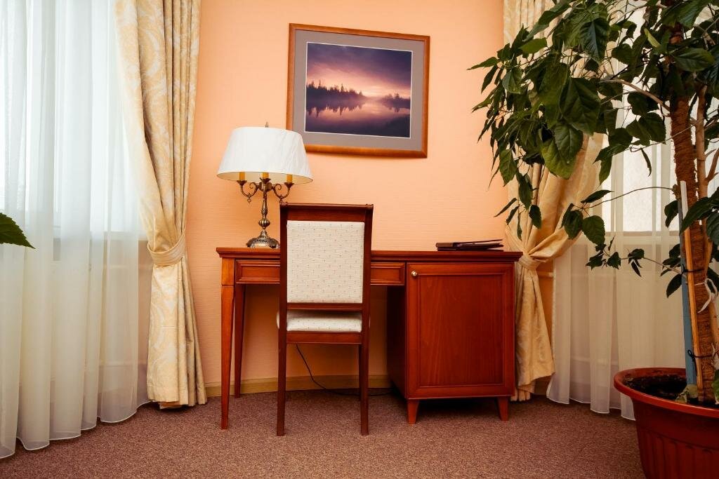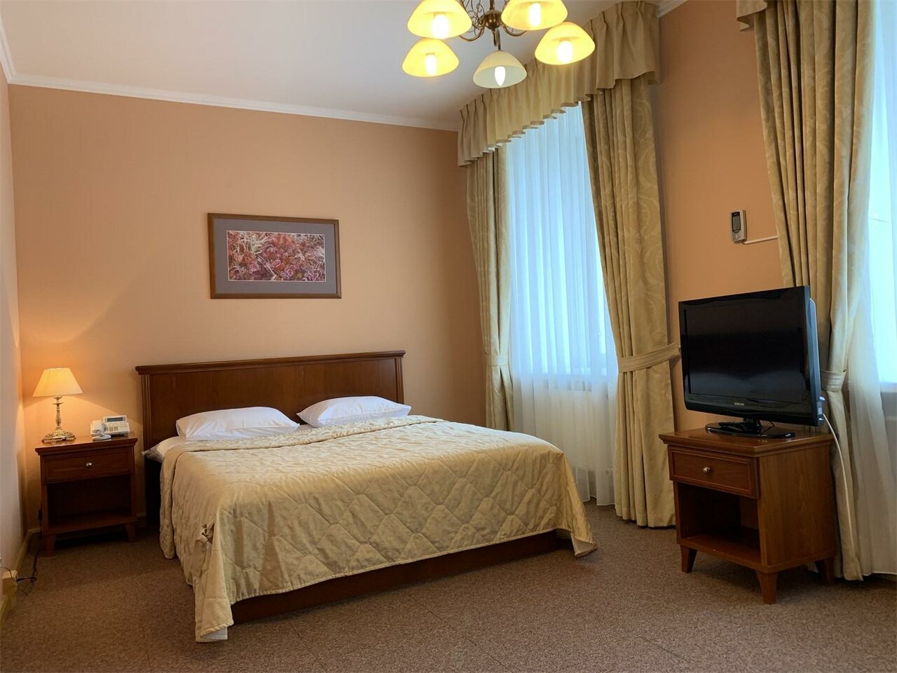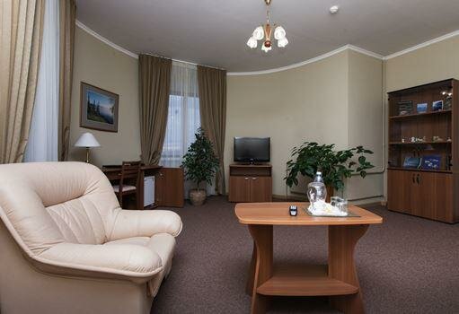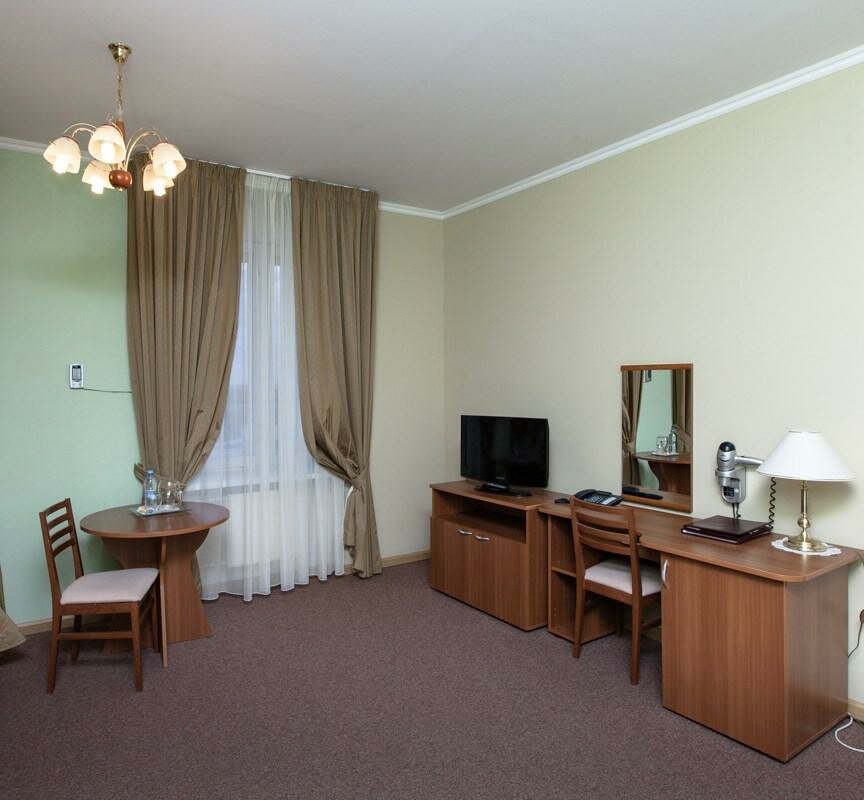 В других гостиницах города не были, сравнить не можем. Из плюсов : большой номер, 2 халата, тапочки, все рыльно-мыльные принадлежности. Чисто. Вода в 2 бутылках. Фен. Тепло. Из минусов : чайника не было, но после того, как попросили принести, сразу же было исполнено. Мебель советская. Но кровать была удобная. Завтраки без права выбора, что принесли, то и ешь. Ресторан даже на 3 не тянет. Ели один вечер, больше не пошли. Мальчик-официант, на ходу, засыпал. Мы, в принципе, не притязательные. Но в городе тяжело найти, где вкусно поесть