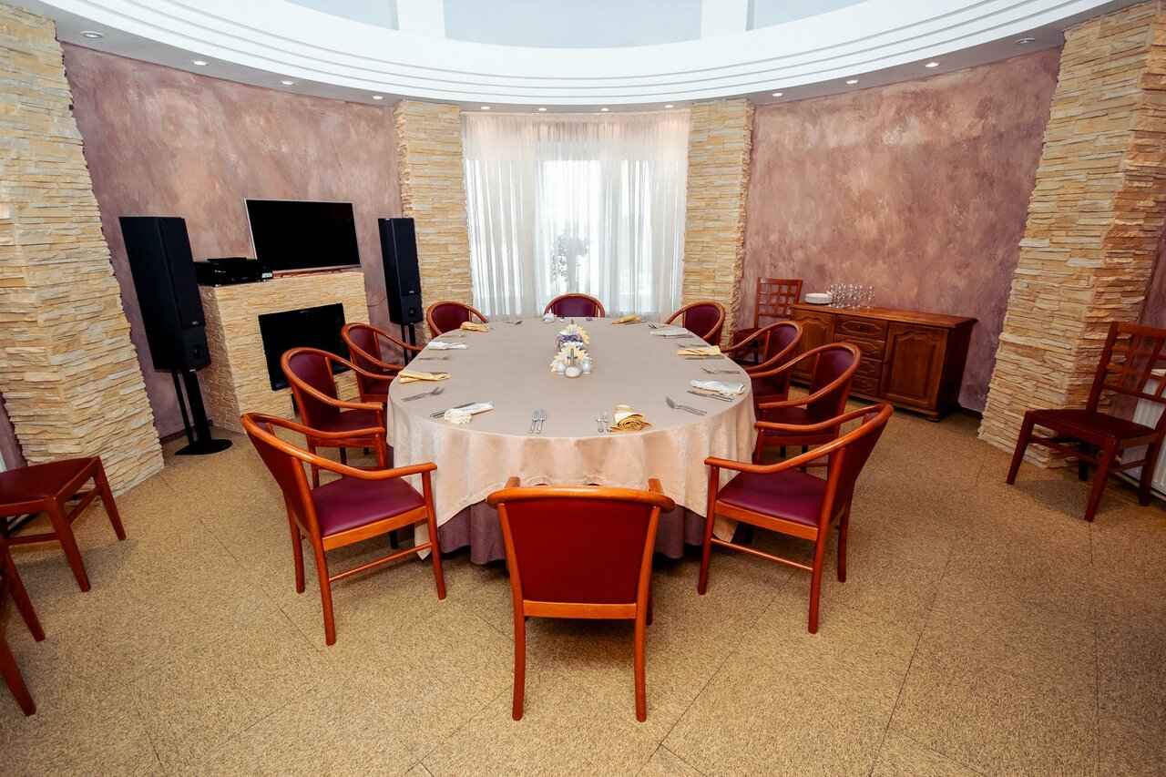 - Вкусный муксун в меню.; Чистота в номерах.; Вкусная и недорогая еда.; Конференц-зал с проектором.; Вежливый и отзывчивый персонал.