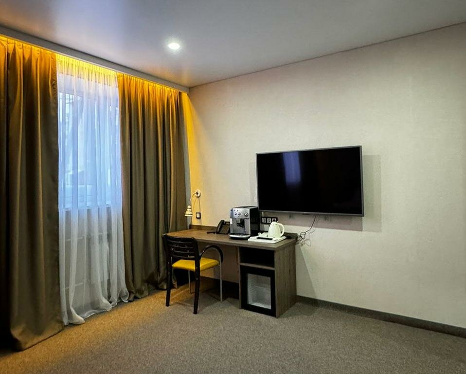 Новый отель, вежливый , готовый помочь персонал. Уютные номера, правда в номере стандарт отсутствовал кондиционер. Рекомендую организовать круглосуточное кафе или ресторан. Завтраки привозят откуда то, выбор минимален. Приехав поздно перекусить негде. А так всё остальное хорошо. Спасибо за гостеприимство
