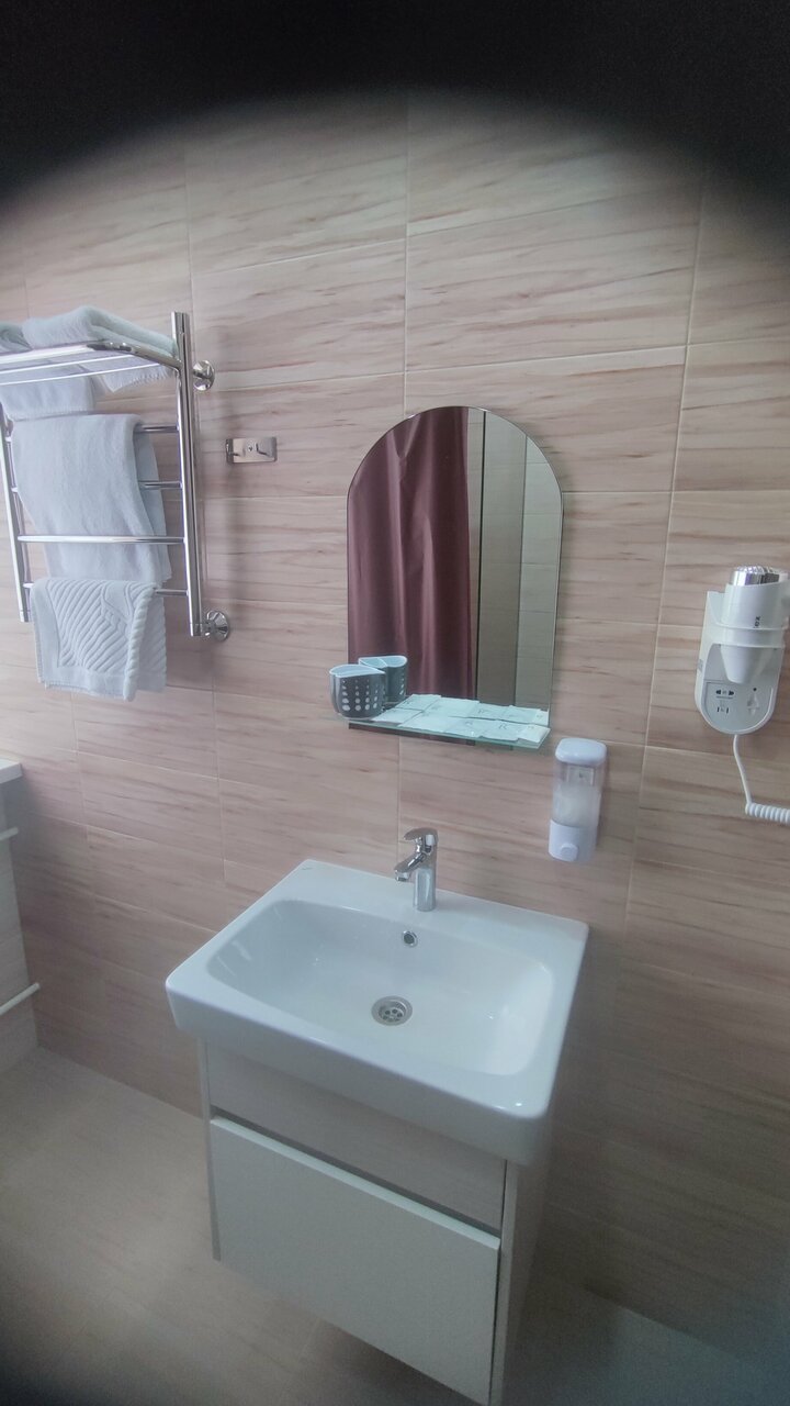 Новый отель, чисто, аккуратно В номере нет воды в бутылках, но есть кулер (нагрев горячей воды не работает) Все что нужно для проживания есть в наличии Персонал вежливый Завтраки: - еда привозная, поэтому теплой не бывает Ну и по этой причине не смогут добавит еды, если ее недостаточно для последних посетителей Время завтрака: до 10.30 по местному времени Для приезжих с центра России не удобно время завтрака, в том числе и по выходным ..(по мск это 08.30 — рановато) Если приходишь к 10.15, то еды уже очень мало.. Рекомендую использовать посуду с крышками, так как нарезка сырная и колбасная заветреные регулярно и не привлекают к употреблению. Сыр не вкусный и всегда продается один и тот же вид Блины всегда холодные (или из холодильника, или хранятся на улице) , но персонал по просьбе подогреет в микроволновке