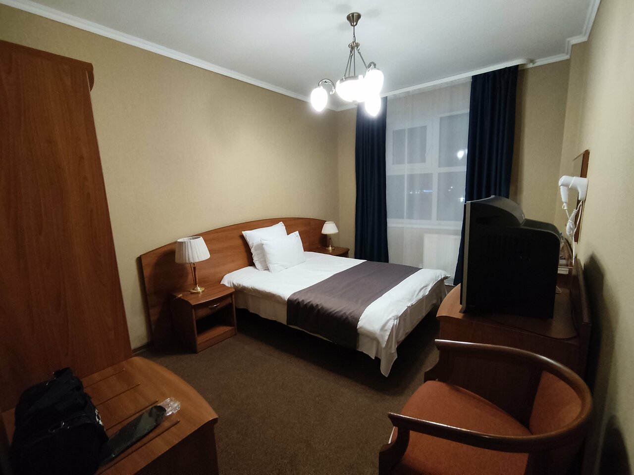 Отличная гостиница! Центр города в шаговой доступности, продуктовые магазины рядом. Чистые номера, приветливый персонал, в номере есть чайник, чай, кофе, мини холодильник, телевизор, туалет, ванная. Всем рекомендую!