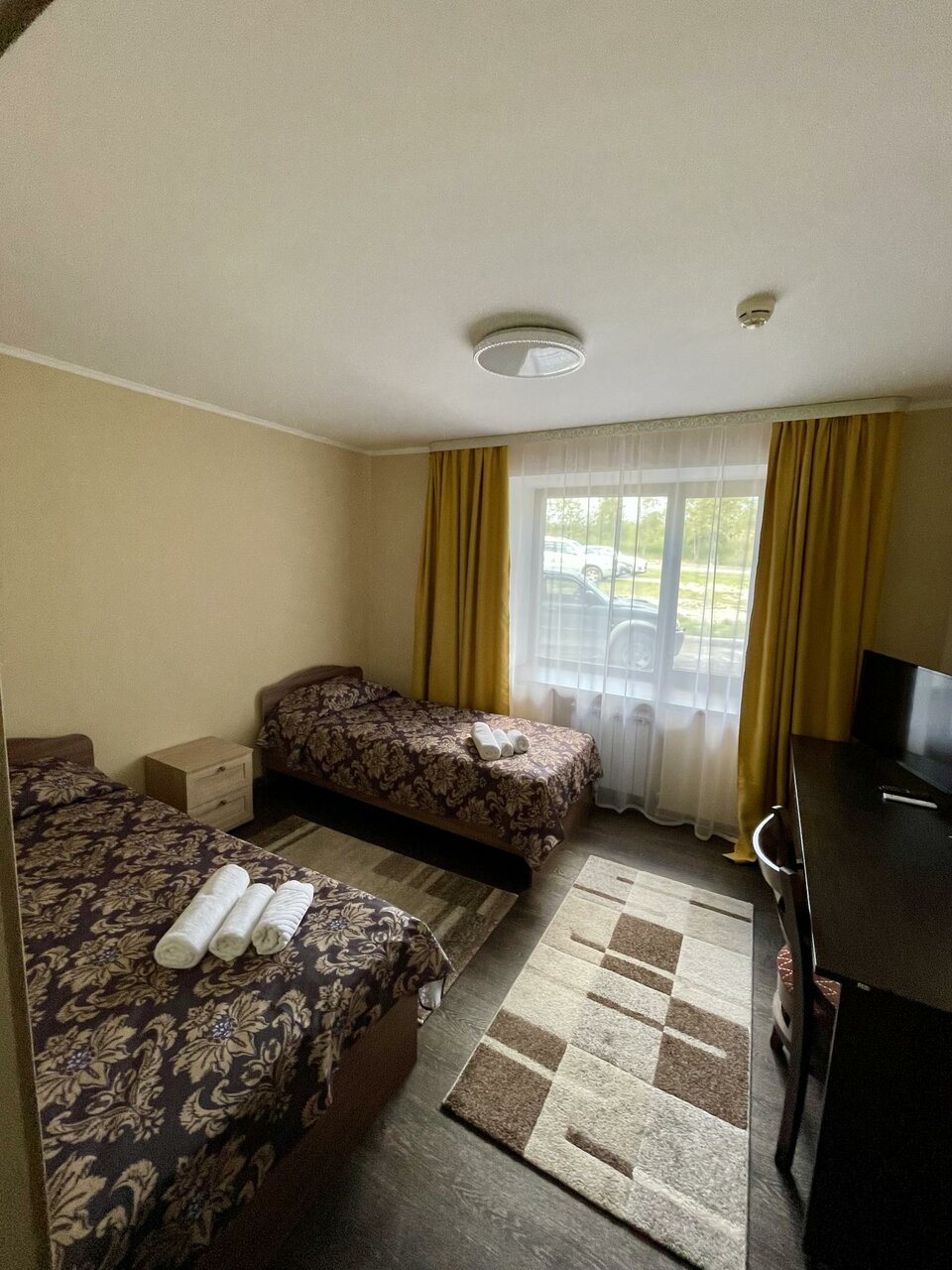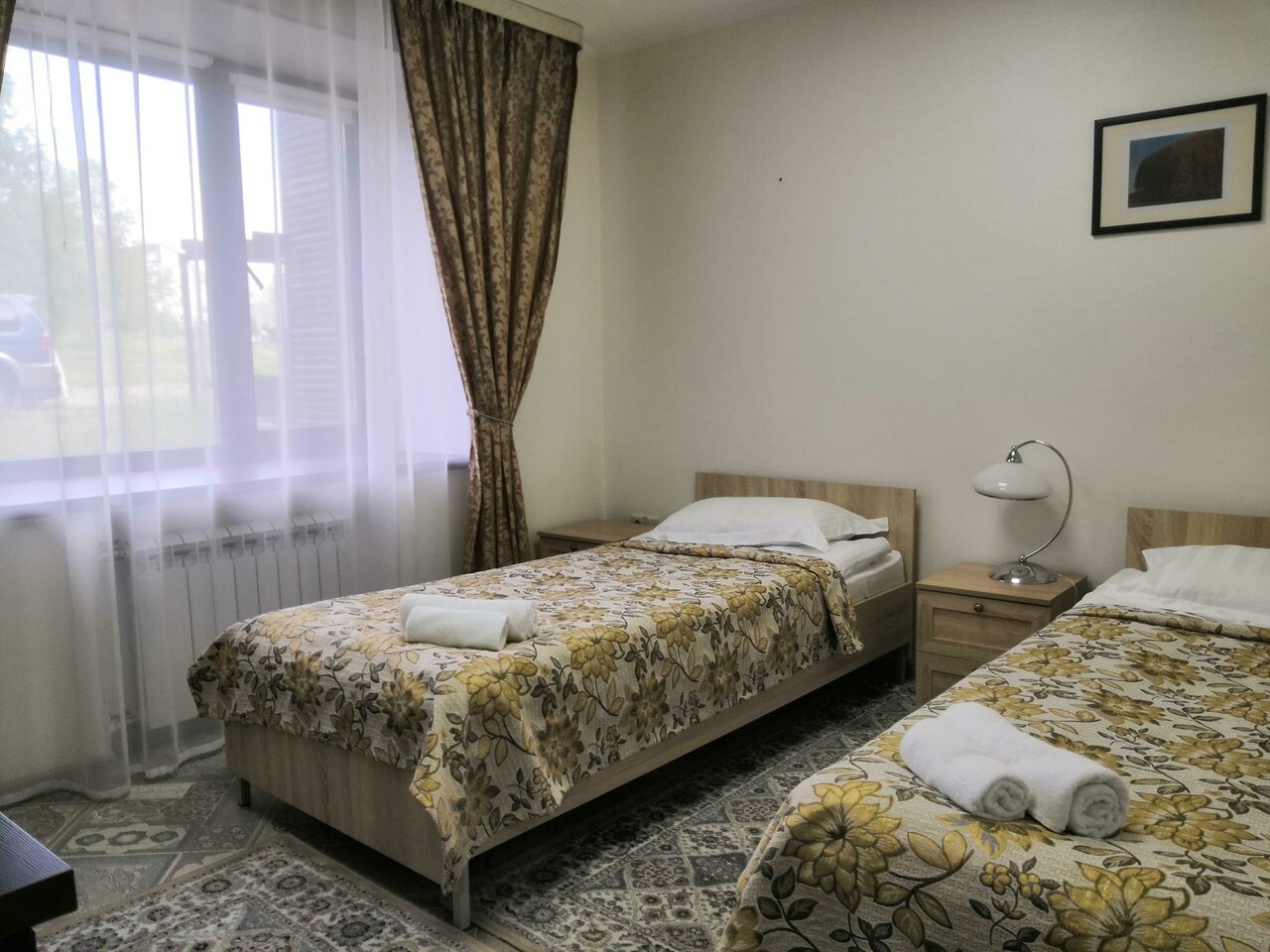 Гостиница на троечку. Фото не соответствуют. Нет как таковой парковки. В номере грязный ковролин, спертый запах. На завтрак нужно идти через дорогу в столовую. Из заявленного на сайте континентального завтрака нет ничего( Из плюсов только расположение и приветливый персонал.