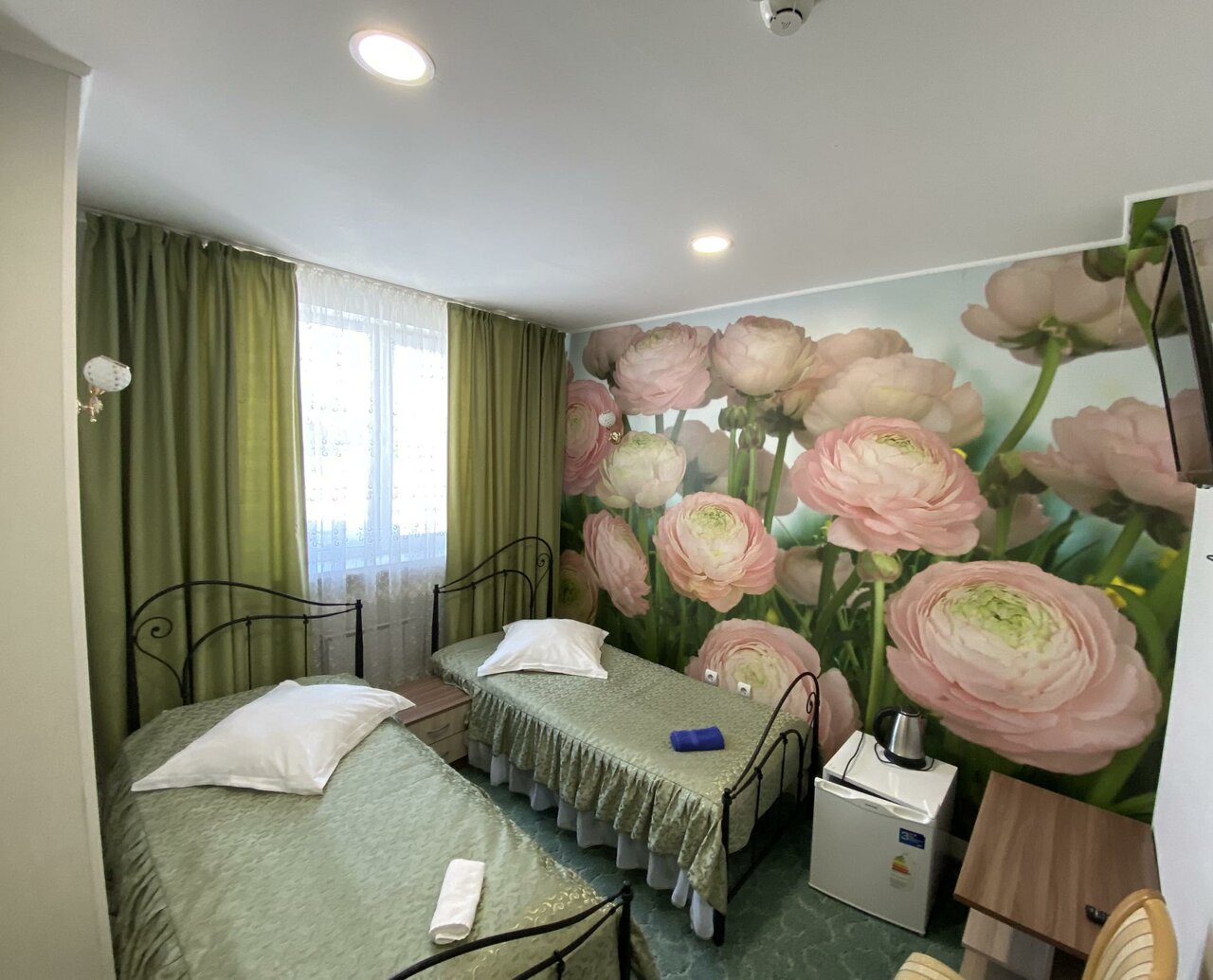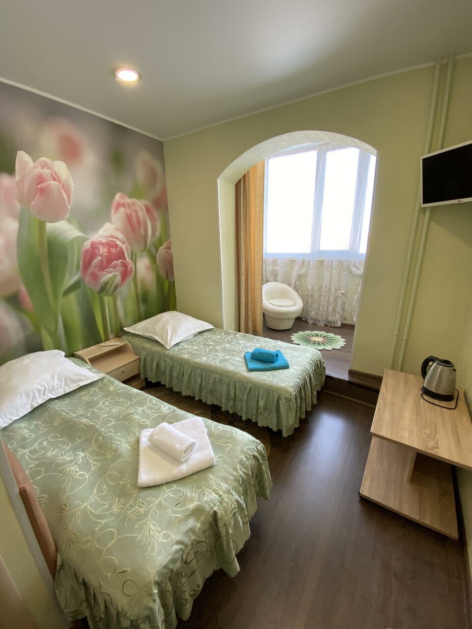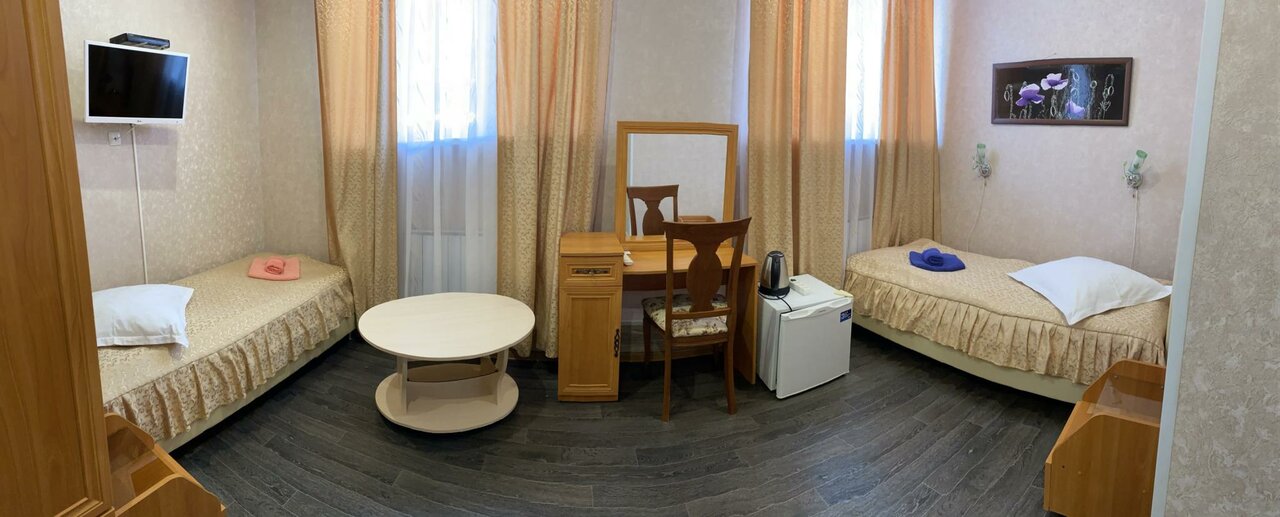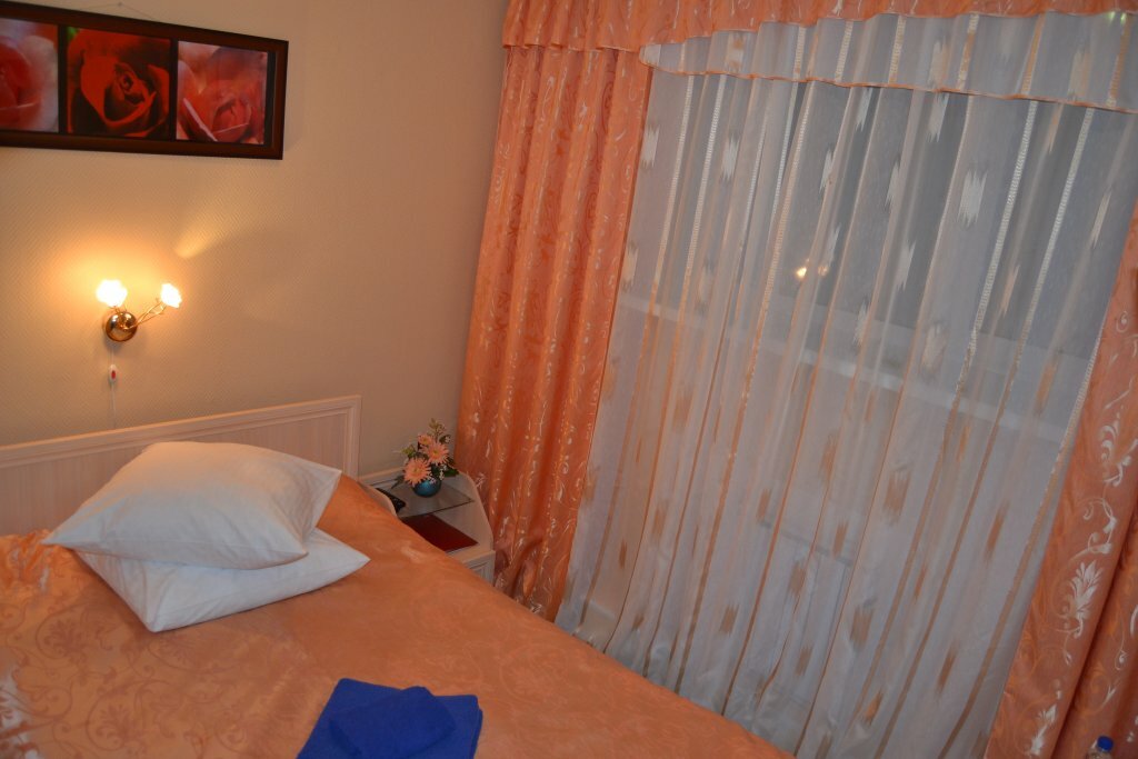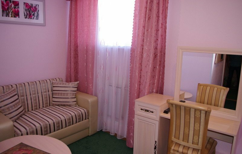 Номера не большие, на первый взгляд чисто, но заглянув случайно под кровать, обнаружилось очень много пыли и мусора. Кровать не имеет изголовья, что очень не удобно. Сев на саму кровать, а еще лучше лечь оказалось просто капец. Проваливаешься, нет перекладин под матрасом, но сам матрас не имеет торчащих пружин. Сказала обо всех обнаруженных проблемах-починили кровать, помыли пол, но так себе. Что касается по кушать-кафе при гостинице нет. Но там есть завтрак и ужин, их привозят с вечера, есть микроволновая печь, можно разогреть. Звезду снимаю за чистоту и кровать. А в общих чертах вполне нормальная гостиница для 2-3х ночей.