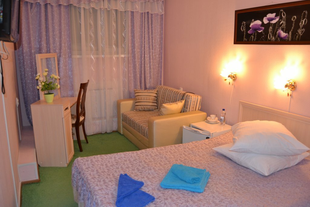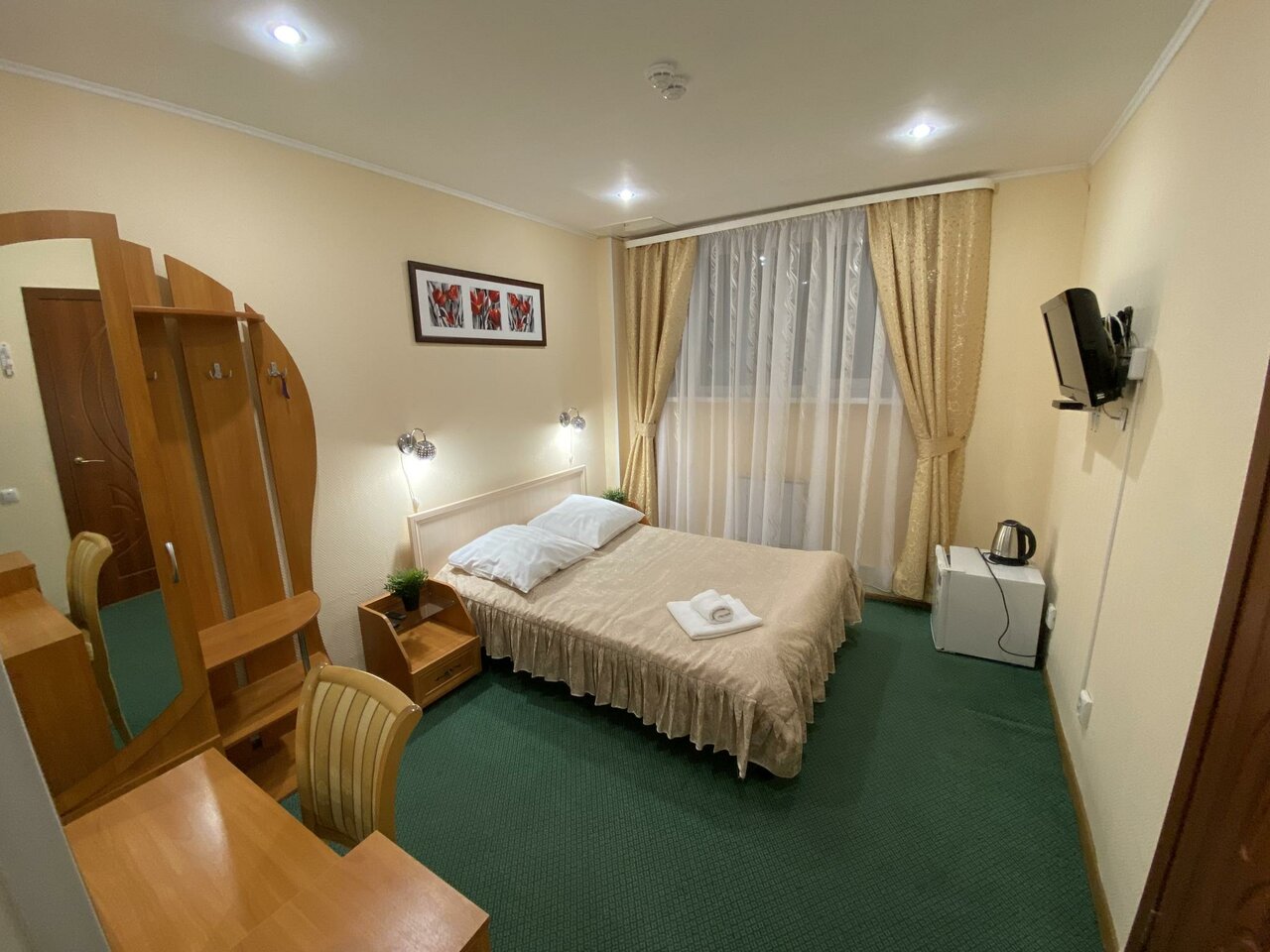 Останавливались в этой гостинице находясь в командировке. У меня был номер комфорт одноместный с большой кроватью. Матрас был в желтых пятнах, в номере постоянно пахло табаком и какой-то едой, видно из вытяжки. Поэтому в номере стояли всякие пахучки. За такую цену качество номера должно быть намного выше!