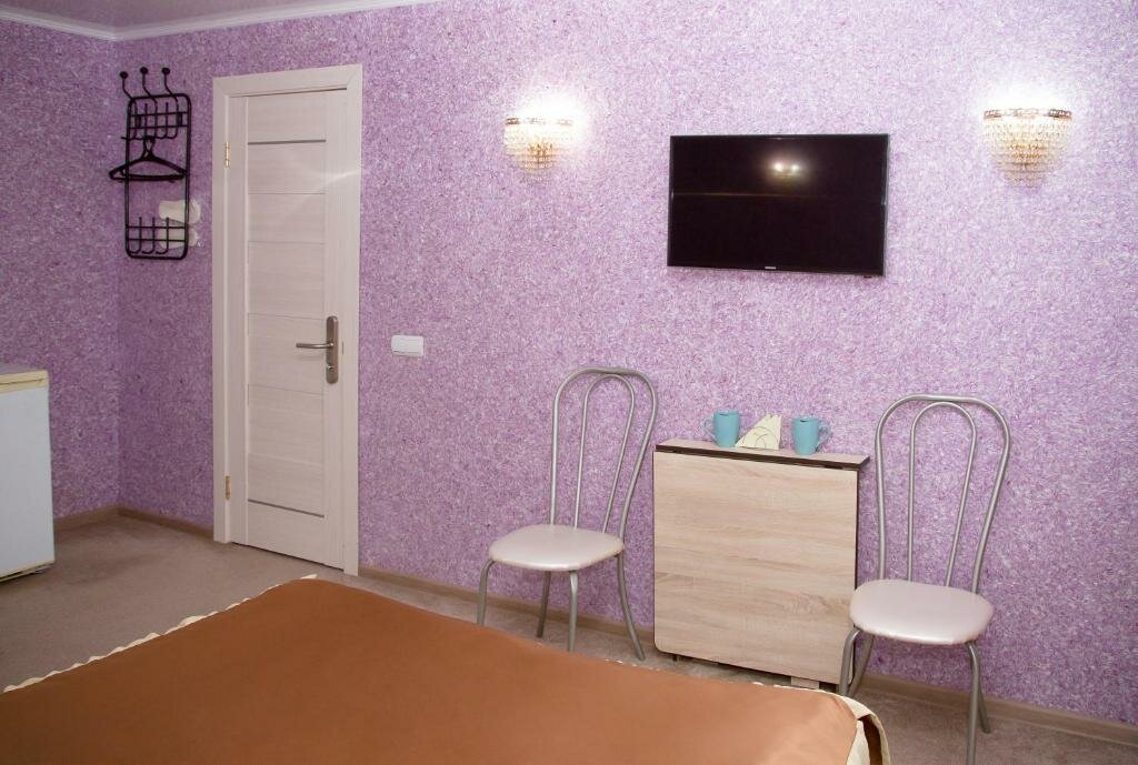 В номере 2 полутороспальные кровати, кабельное телевидение, холодильник, 2 тумбочки, стол, стулья. С/узел на три номера в блоке. Wi-Fi бесплатно.