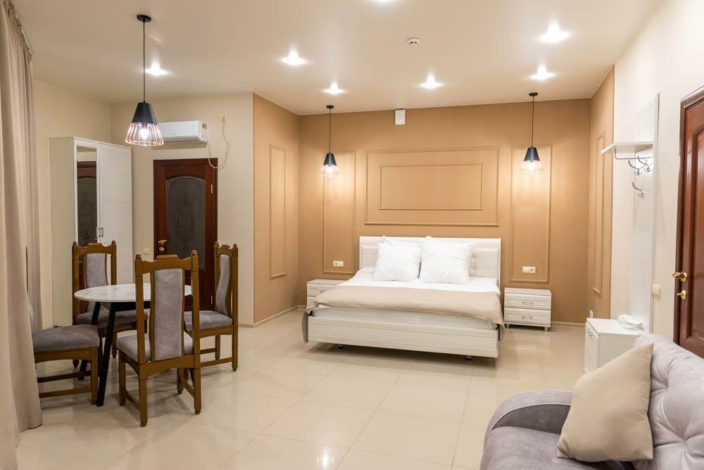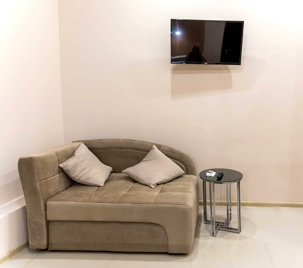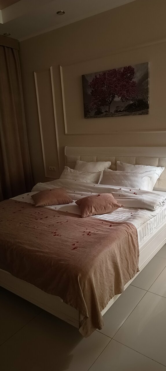 Снимали номер люкс на двое суток. Заселились в 7 утра, без бронирования. Очень вежливая женщина-администратор нас встретила. Номер просторный, чистый. Нам принесли чай, зажгли свечи, кровать аккуратно заправлена с лепестками роз. Телевизор работал, каналы на любой выбор. Ванная комната с джакузи, есть все средства гигиены. Можно заказать еду в номер в ресторане, который находится в этом же здании, есть магазин 5ка рядом. Нам очень понравилось.