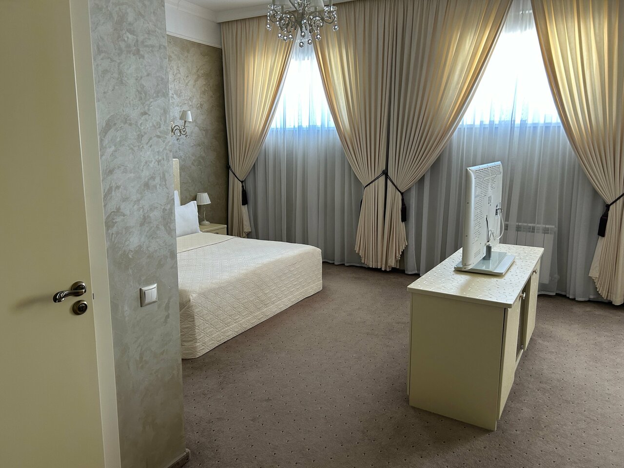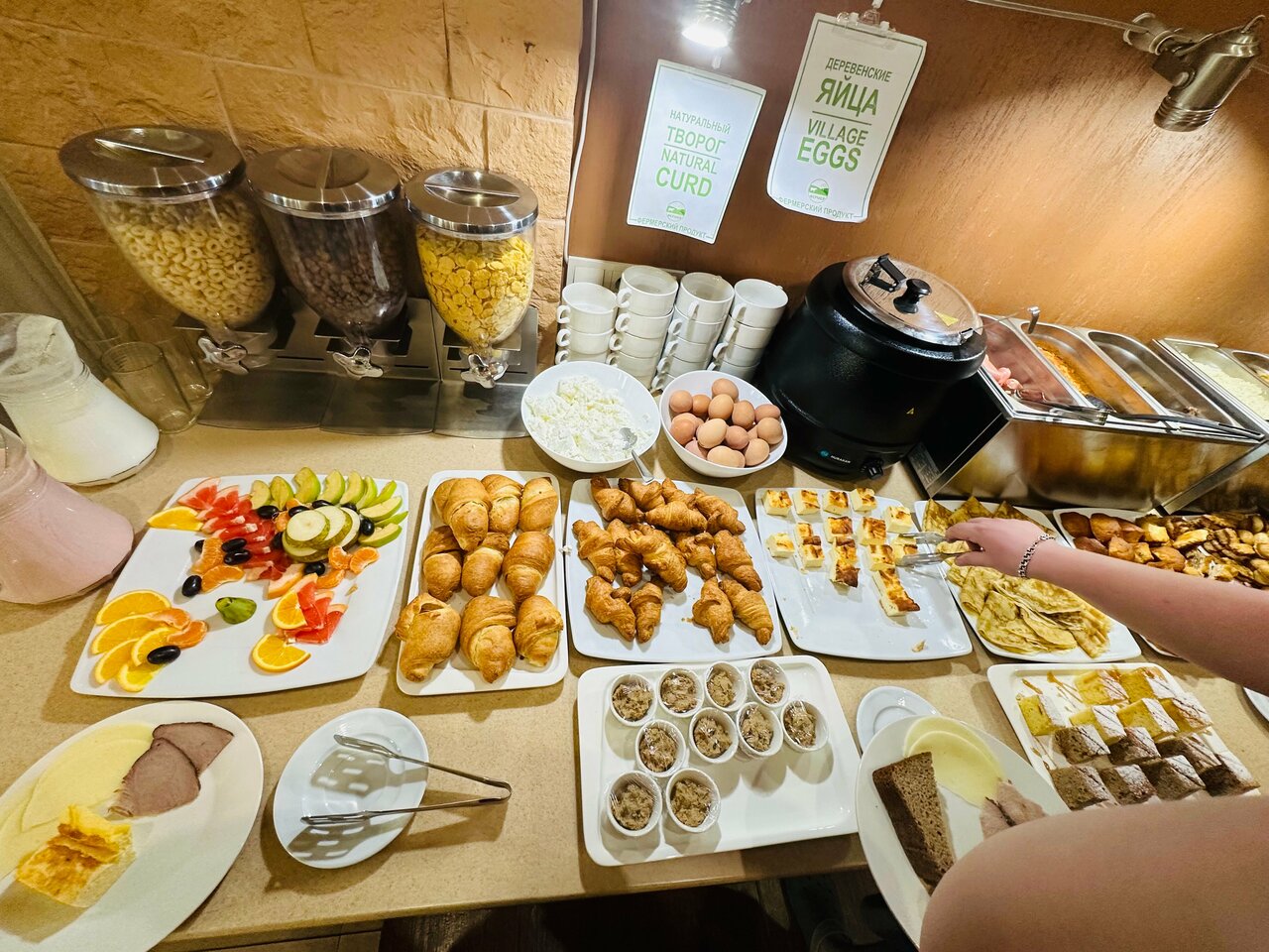 - Хорошие номера с видом на внутренний дворик.; Шведский стол на завтрак.; Тишина, несмотря на близость трассы.; Включены бассейн, хамам, сауна, тренажерный зал.; Холодильник, зубная паста, щетка, гель в номере.