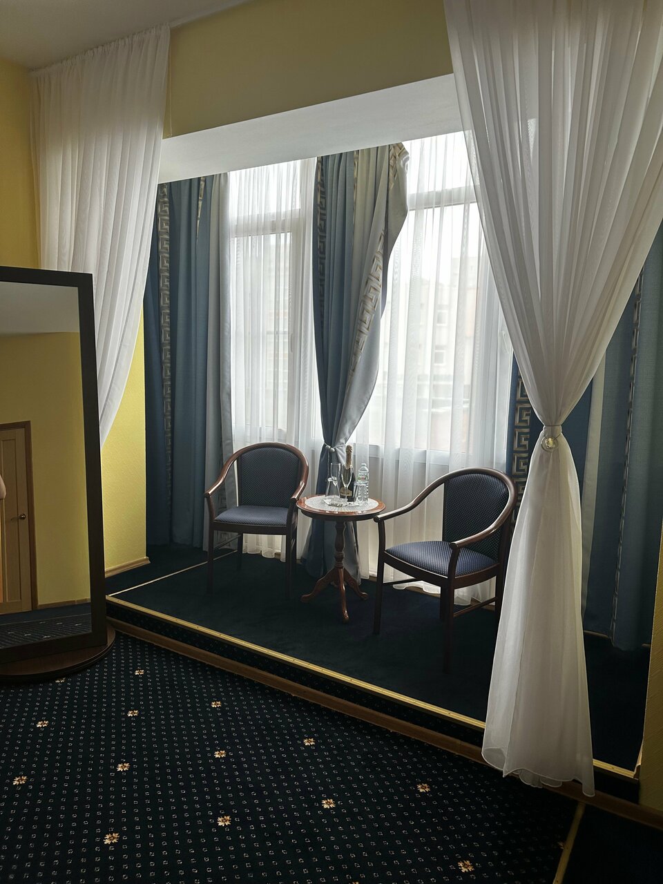 Были в романтическом номере, где нас ждал игристый напиток и аолотенца лебедями) Все очень понравилось! Сытный завтрак по типу шведского стола порадовал! Приветливый персонал! Отель небольшой, уютный, чистый и очень тихий! С удовольствием остановимся ещё раз)