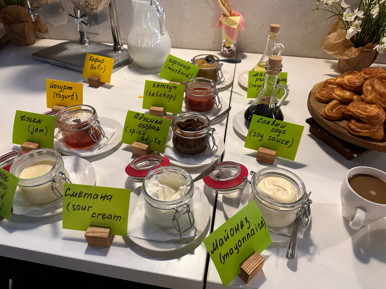 - Хаотичная организация завтрака (много людей, еда быстро заканчивается).