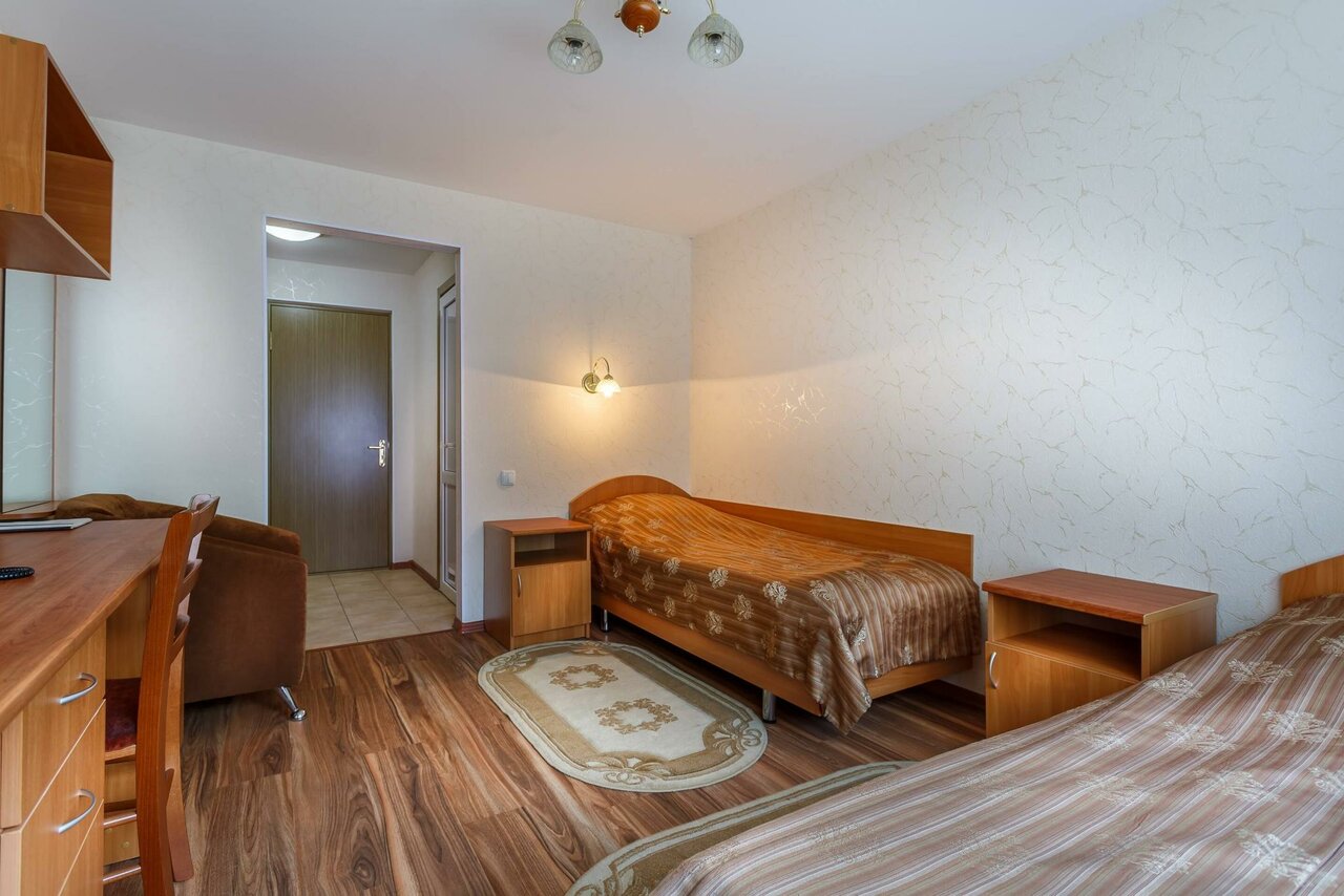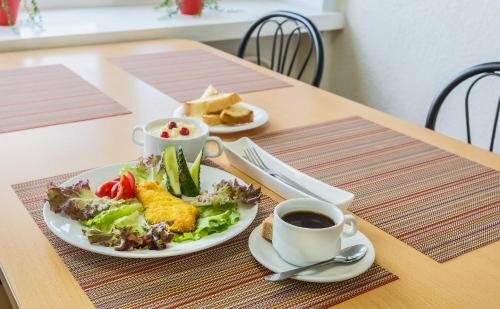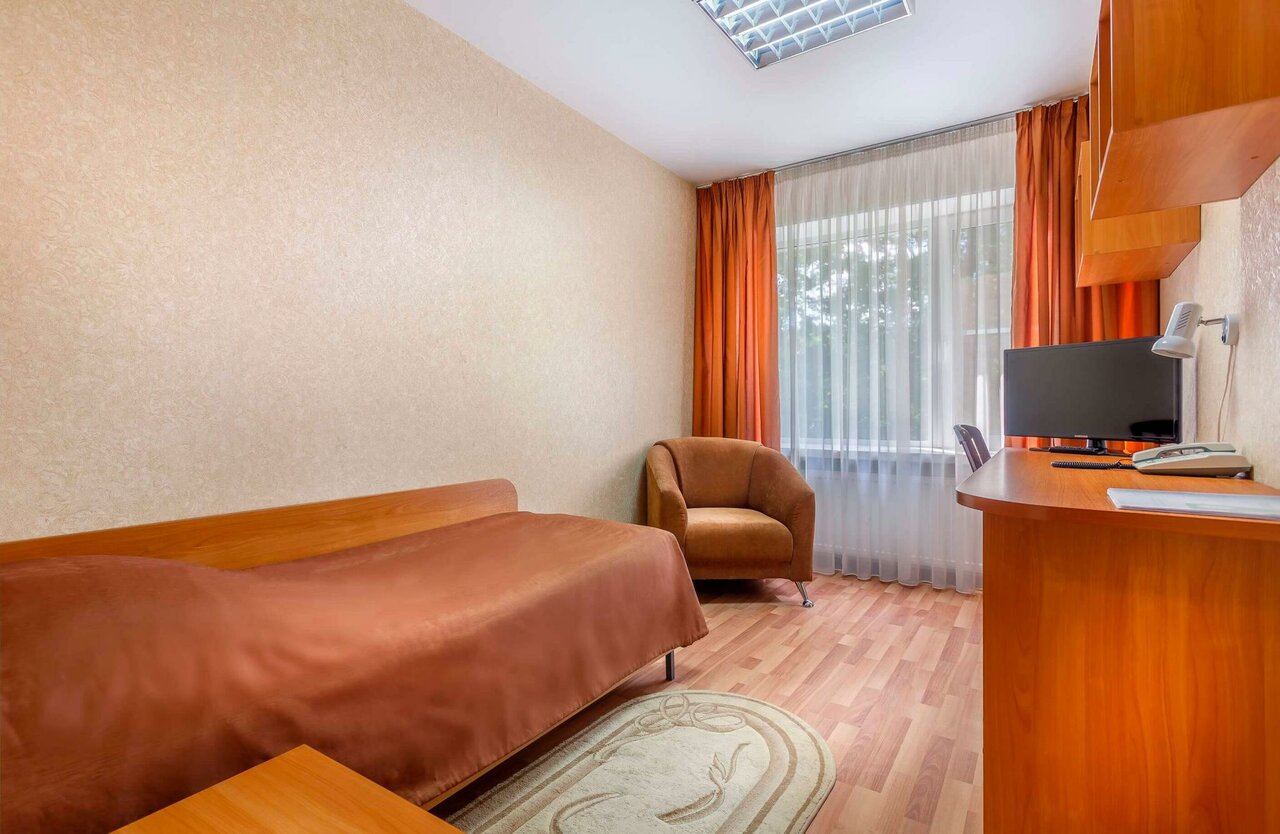 Хороший номерной фонд. Удобные кровати. Приемлемые цены. Но ванная комната мне не нравится — единый формат душевая плюс туалет. Будете принимать душ готовьтесь к мокрому полу везде. Из наборов — только шампунь, гель и мыло. С собой берите зубную щётку и пасту, здесь не предусмотрено. Не будет тапочек). В летнее время работает кондиционер, не жарко. Зимой очень тепло в номерах. Завтраки отдельная эпопея… Так как это гостиница при институте повышения квалификации готовьтесь к повышенному потоку людей на завтрак. Или завтракать с утра с большим количеством народа, или чуть попозже — но количество еды уже ограничено. Причем с системой ‘шведский стол’ завтрак выглядит скудно. Время приема пищи для завтрака с 7-10 будни, с 8-10 выходные. К времени 9:00 готовьтесь к остаткам. Летом было вкусно, сейчас уже немного грустно..