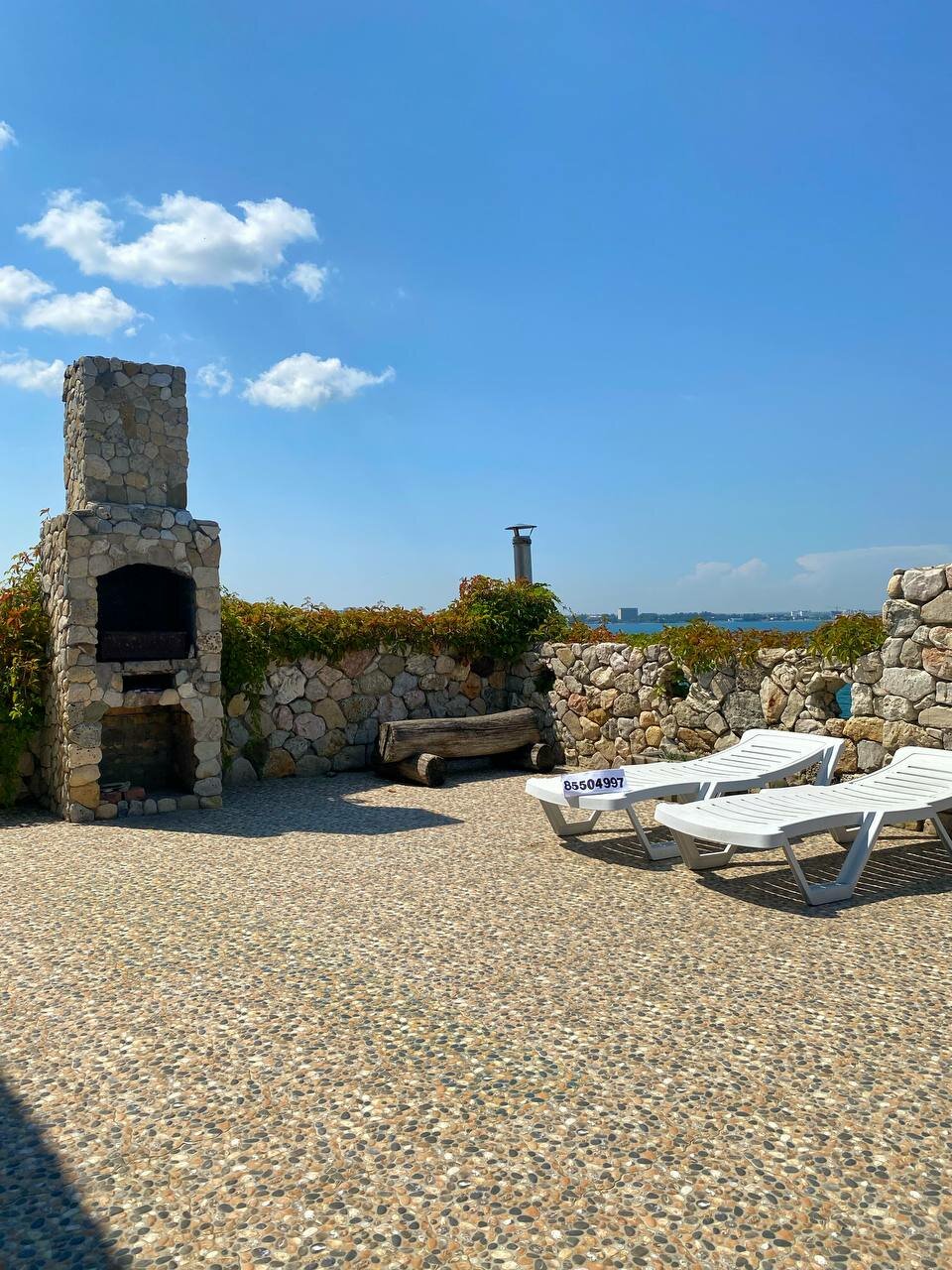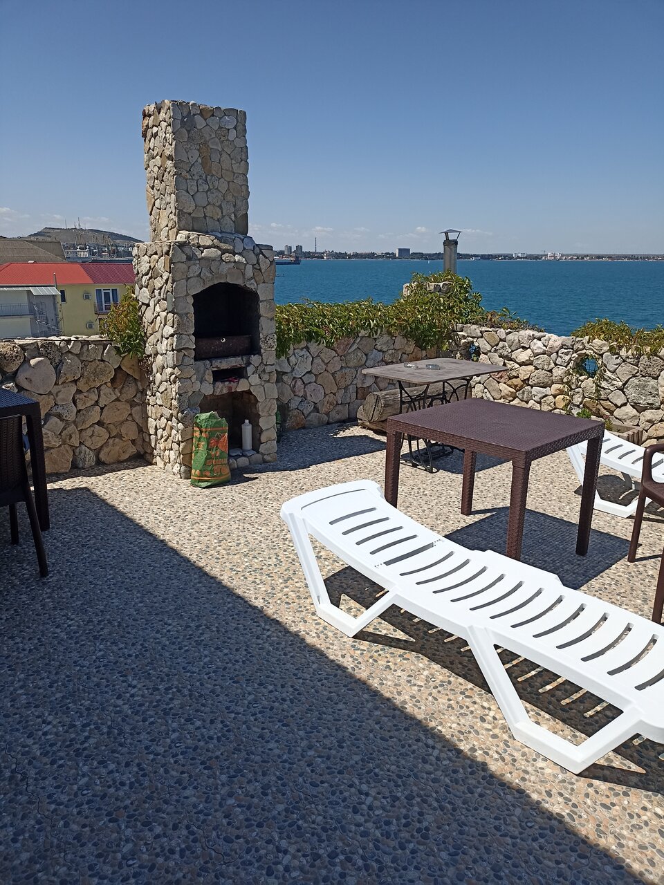 Отдельная терраса с видом на море. Мангальная зона и лежаки.