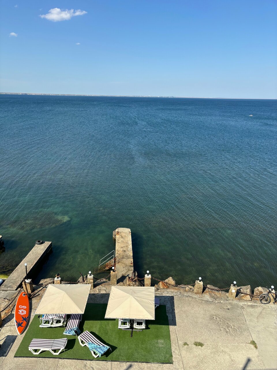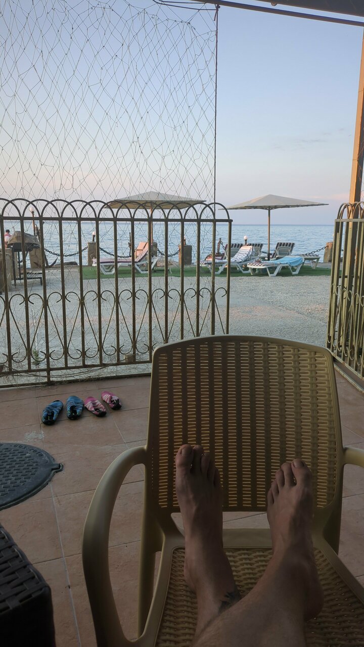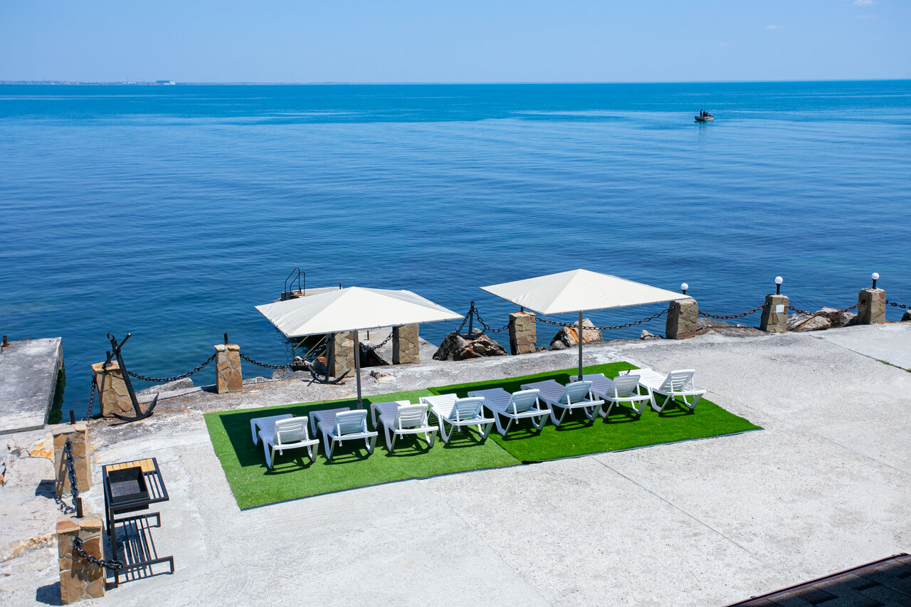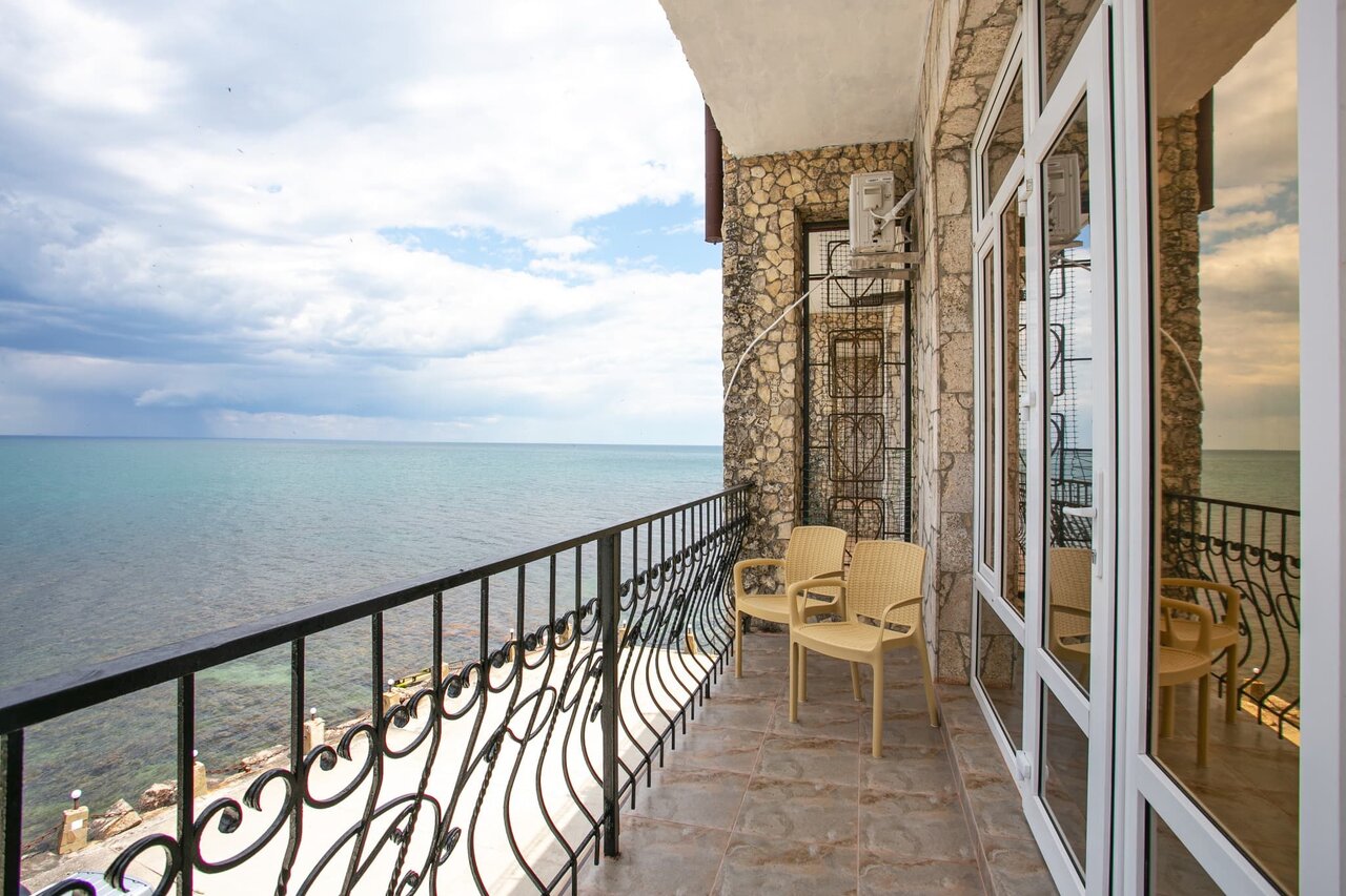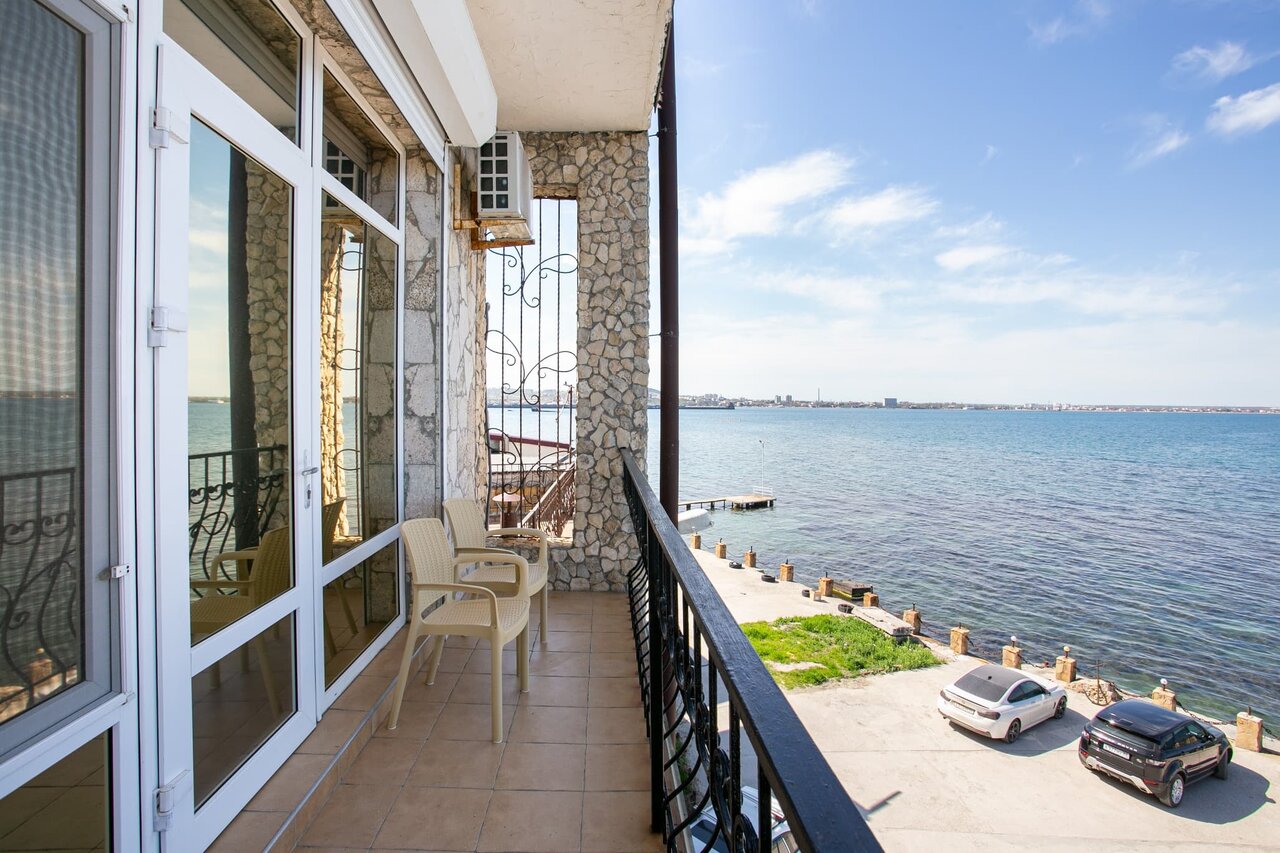 Шикарное место, в необычном месте. В номере чисто, свежо. В номере есть все необходимое, проблем с водой отсуствует Вид из окна на море, можно сидеть на балкончике попивать вино и смотреть на море, до него метров 3-4 Рядом причал, там же шезлонг и лежаки Место классное Вход на море либо с пирса, или в мини пляжа, там галька, но есть водоросли, которые особо не мешают, но ездили на золотой пляж, он в 5км оттуда.