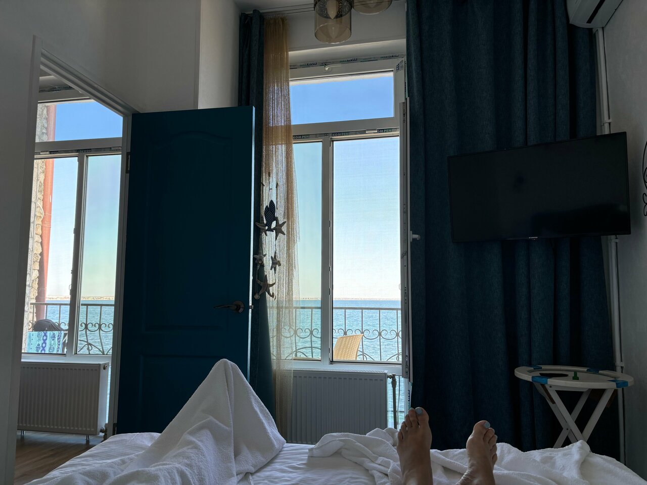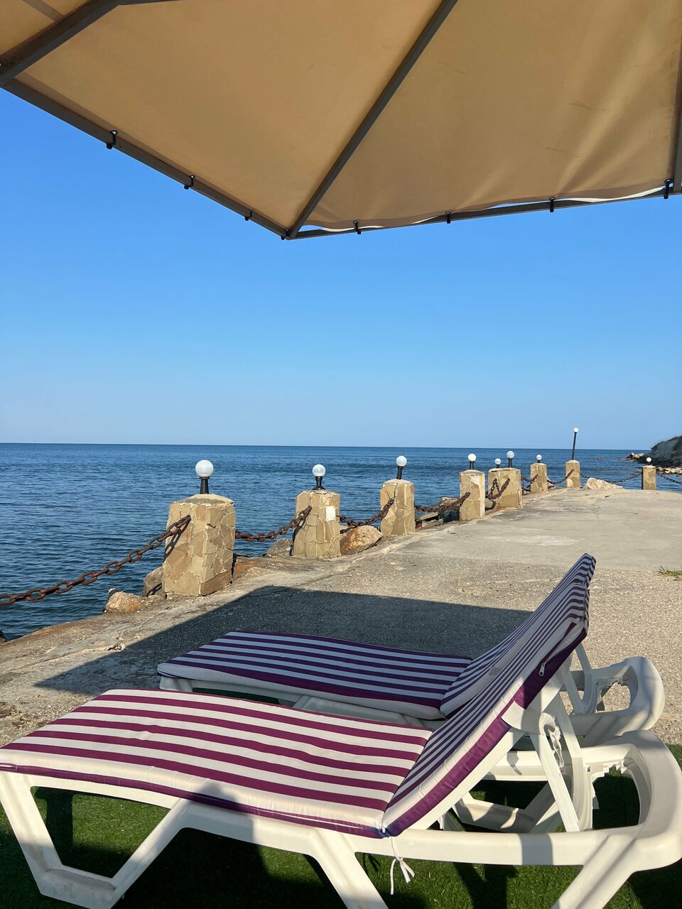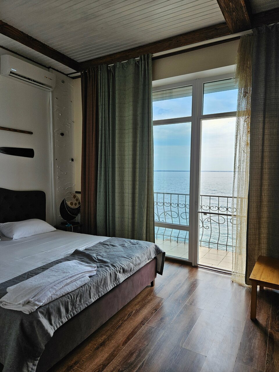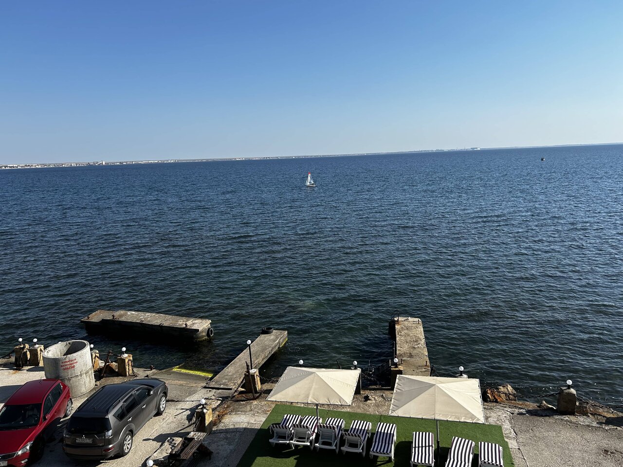 Шикарное место, в необычном месте. В номере чисто, свежо. В номере есть все необходимое, проблем с водой отсуствует Вид из окна на море, можно сидеть на балкончике попивать вино и смотреть на море, до него метров 3-4 Рядом причал, там же шезлонг и лежаки Место классное Вход на море либо с пирса, или в мини пляжа, там галька, но есть водоросли, которые особо не мешают, но ездили на золотой пляж, он в 5км оттуда.