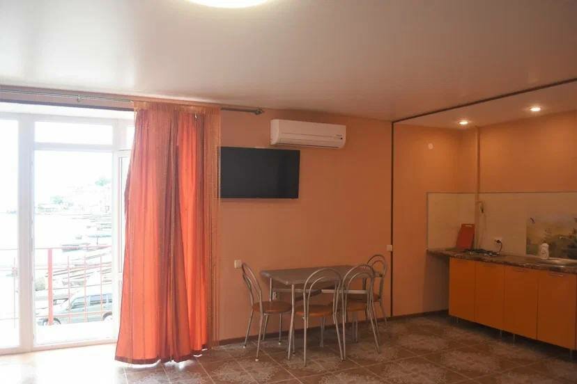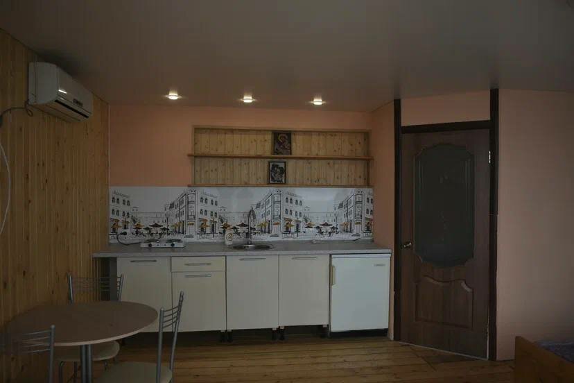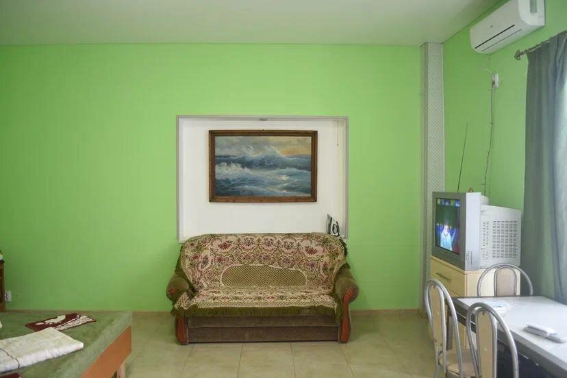 - Наличие кухонного уголка и посуды.; Чистое море по сравнению с городским пляжем.; Наличие кондиционера, Wi-Fi, туалета, душа, холодильника, ТВ.; Хорошая комната с кроватью и диваном.; Чистота в номере.