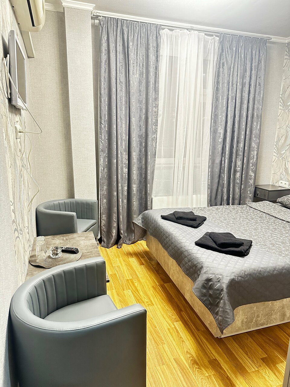 Одна звезда за сам номер (действительно неплохой был) , вторая звезда за чистый и исправный санузел. В остальном все печально: парковки нет(это заведение расположено на 1 этаже жилого дома в спальном районе), поесть тоже негде, кровать кривая и скрипит (как и все двери).