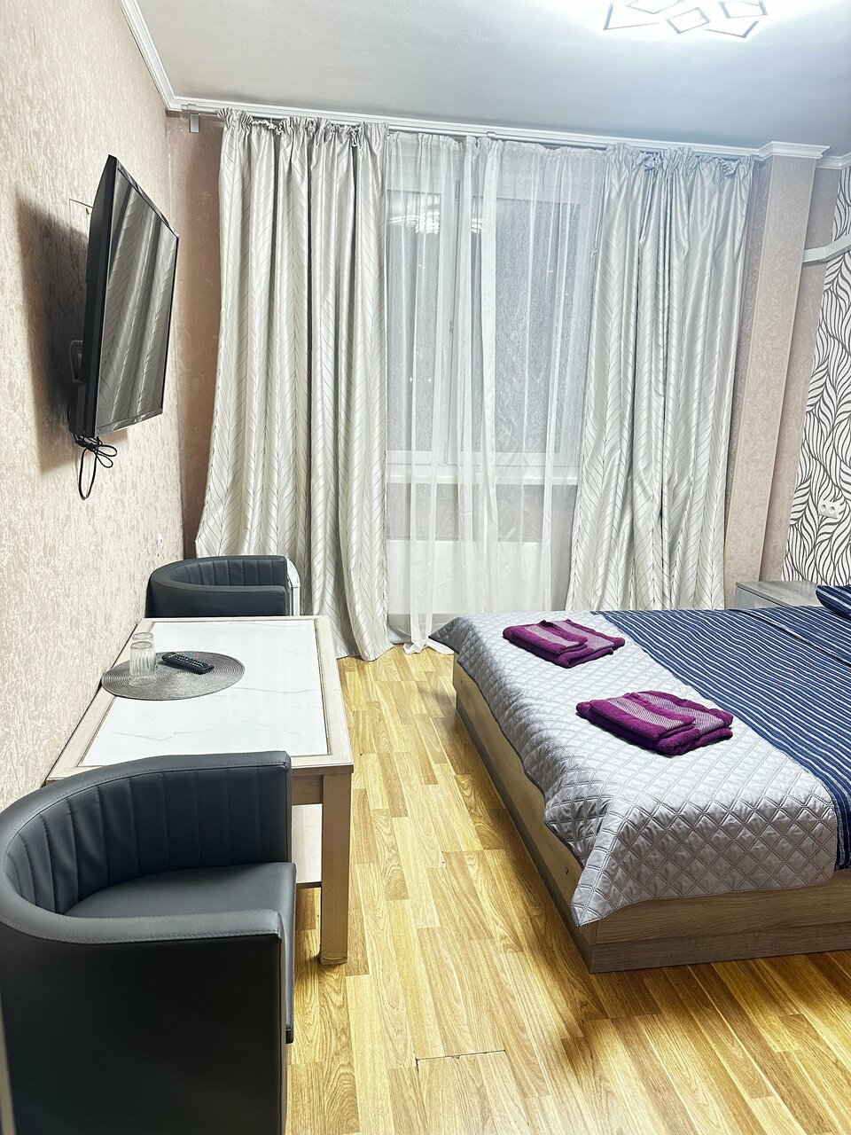 Очень понравился номер, в меру просторный, чистый, уютный, 1-2 человекам будет вполне комфортно. Персонал доброжелательный.