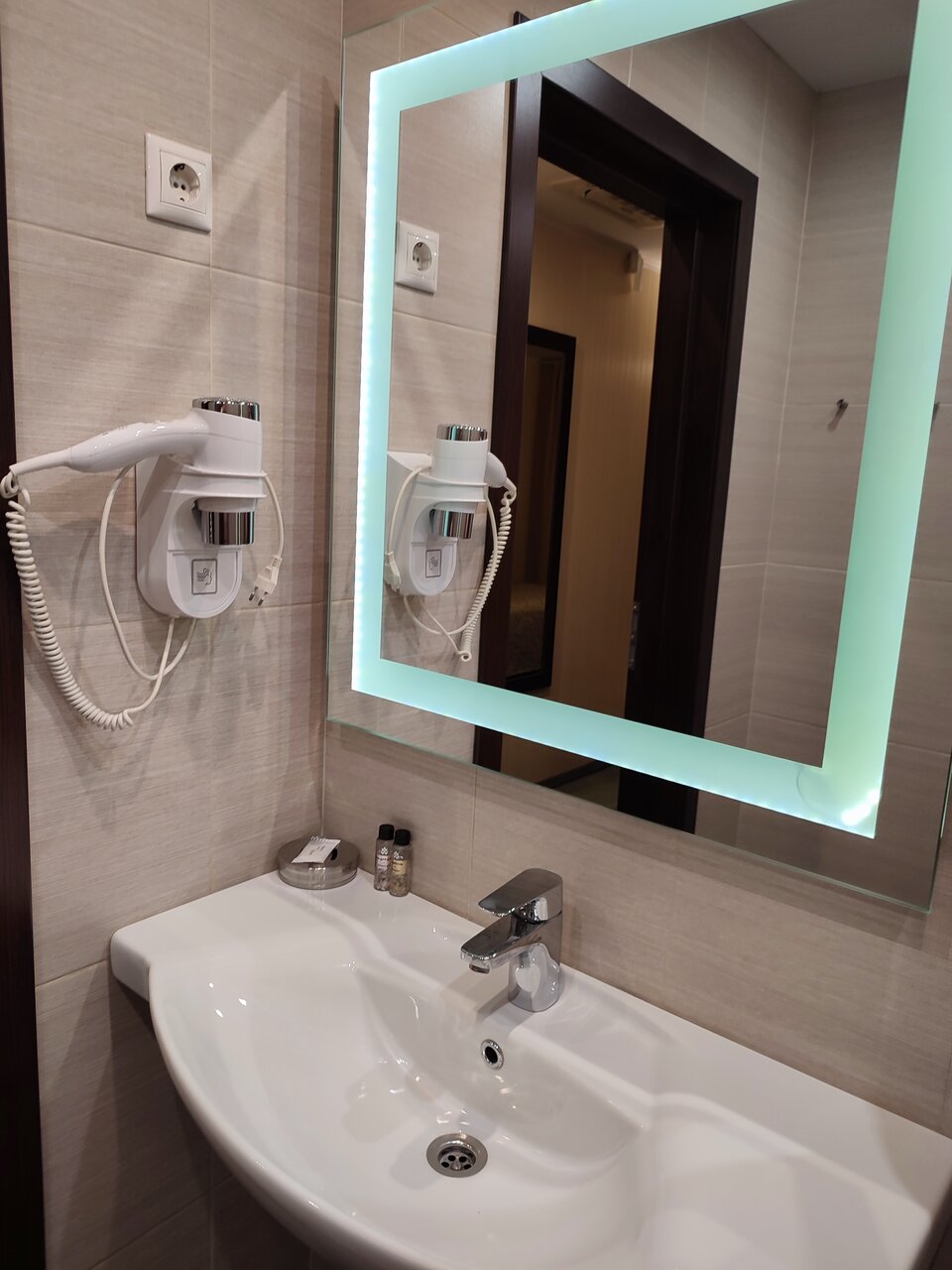 Чистый и уютный отель. Останавливались семьей. Был номер с двумя кроватями и раскладным диваном. В ванной есть гигиенические принадлежности. Кровати очень хорошие. На первом этаже есть кафе где можно позавтракать. Хорошее местоположение отеля.