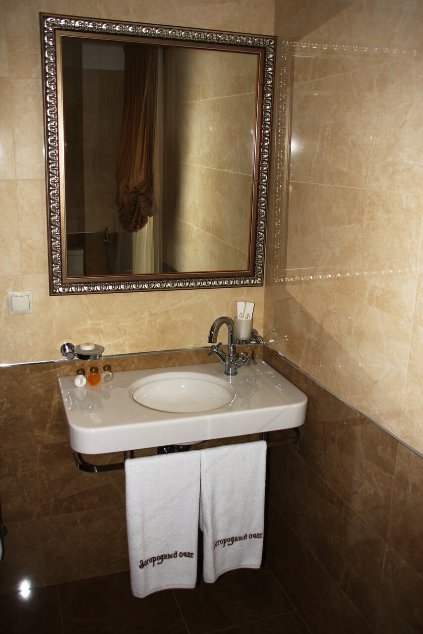 В отеле не была, заехали покушать, заказали телячьи и бараньи ребрышки, харчо, морс! так вот хочется сказать, что все оооочень не вкусно!!!морс -это просто вода!Антураж помпезный, а еда хуже обычного кафе.цены не соответствуют качеству едв. Если Вам хочется платить за антураж, а не за еду, то вам сюда