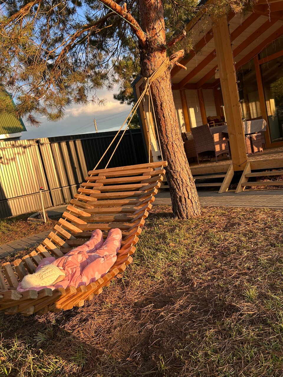 Отдыхали дважды этим летом. Недалеко от города, большая территория и красивые полувековые сосны на ней, лаконичный домик со всем необходимым, банный чан, костровая зона, удобный мангал и детская площадка. Порадовало что машину паркуешь на территории за воротами, но отдалено от мест отдыха.