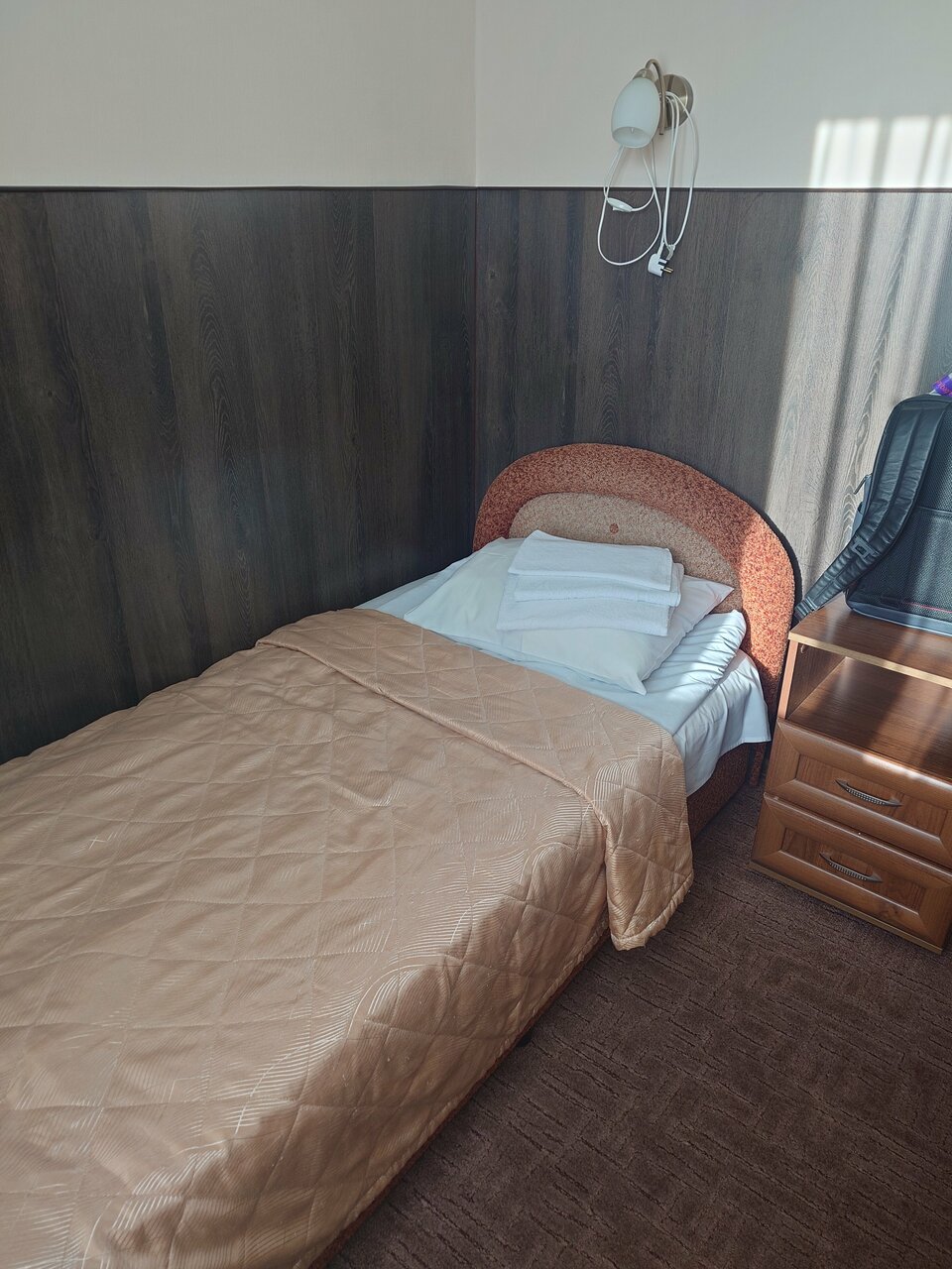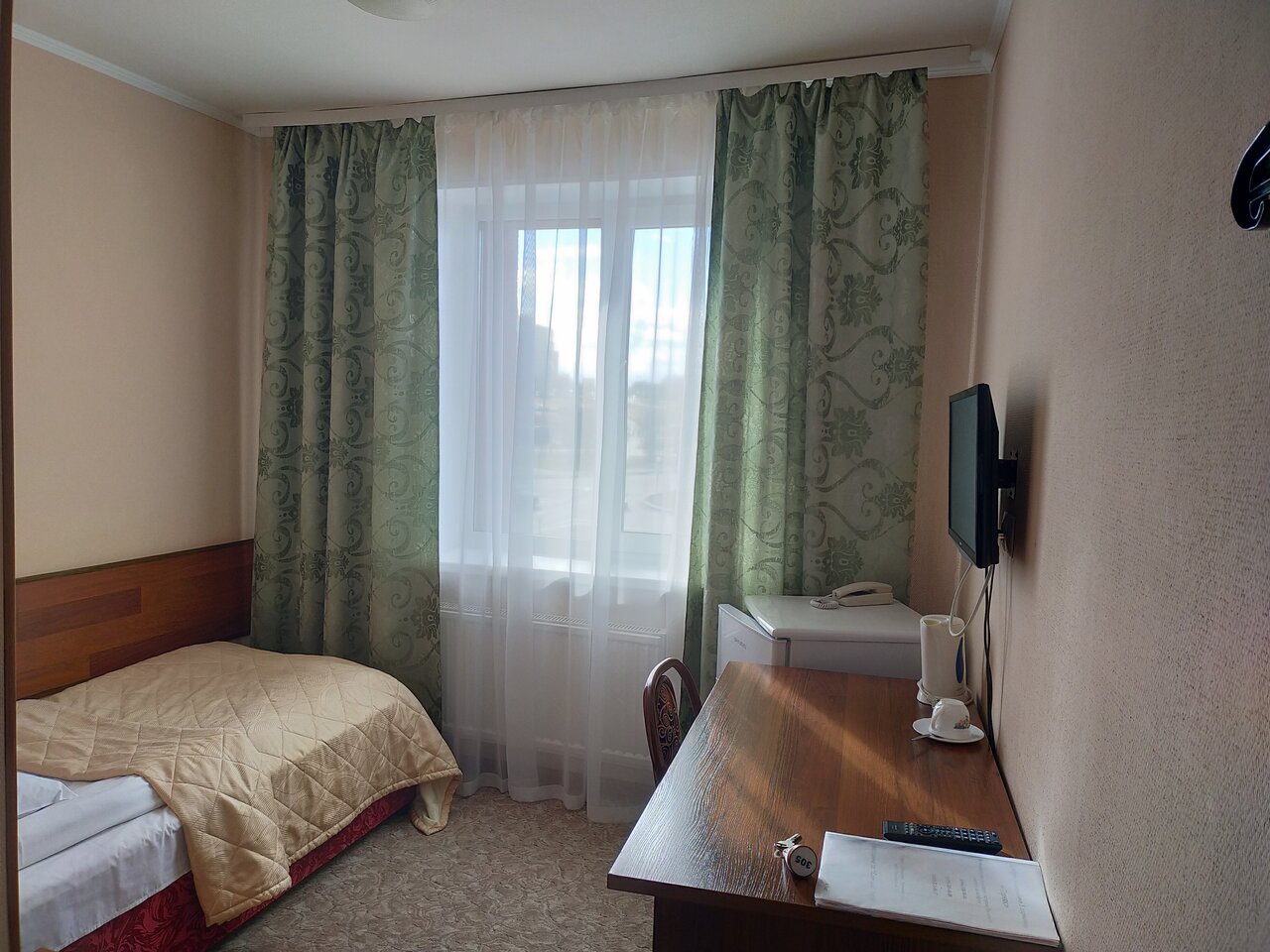 Единственная гостиница в городе. В целом хорошо. Минусы — нет микроволновки, нет кулера с питьевой водой. Зато тепло.