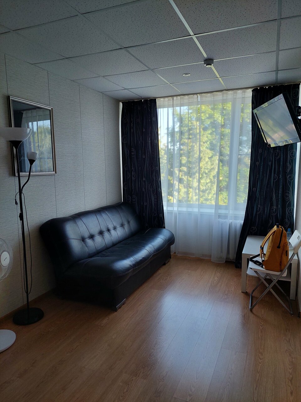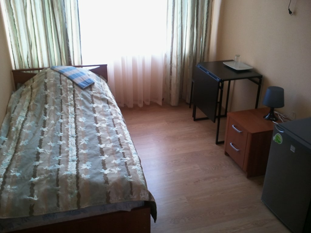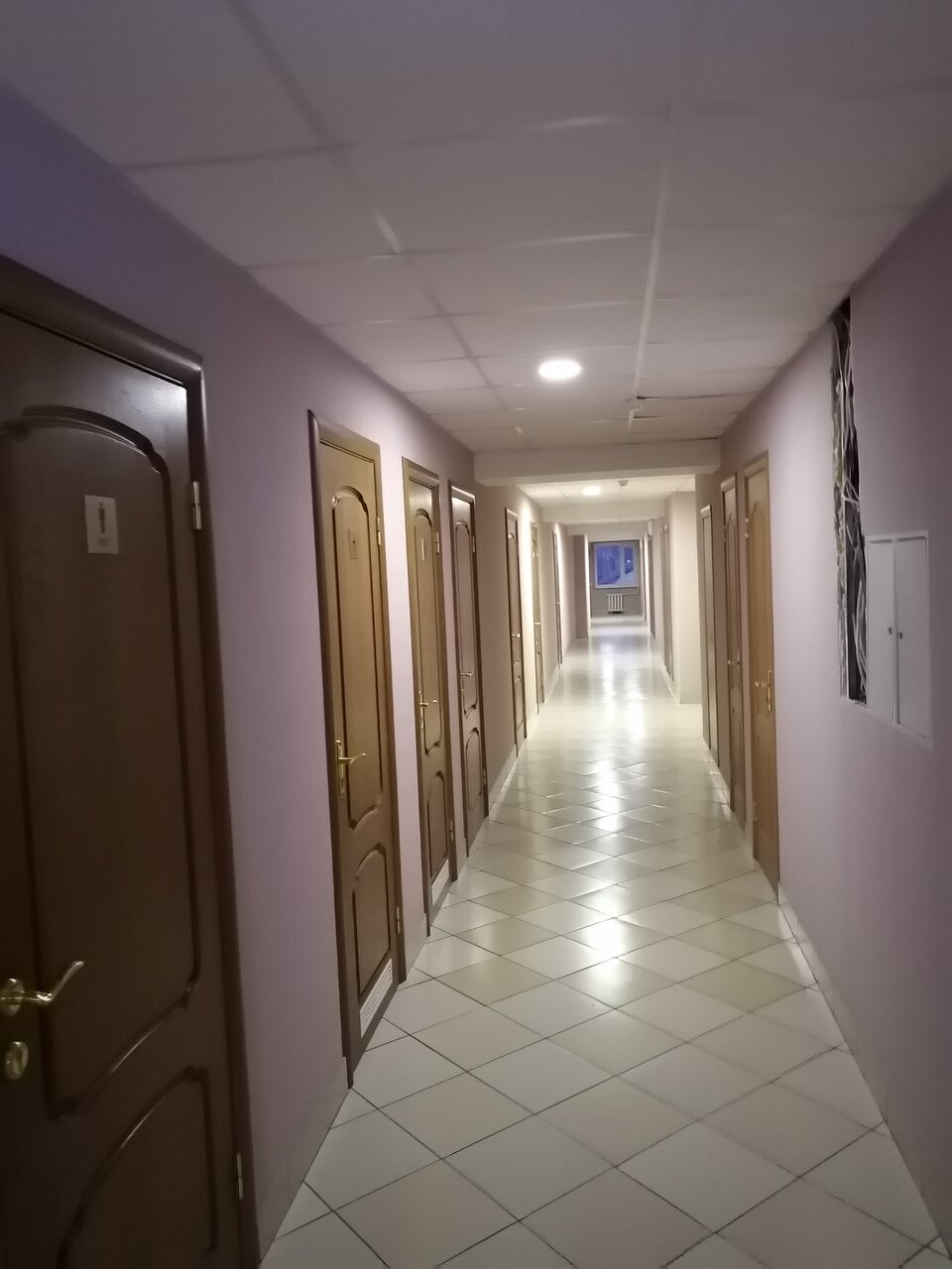 Ночевал в одноместном экономе. Мне понравилось. В номере чисто, уютно. Кровать не скрипит. В номере умывальник, телевизор. Туалет и душ — на этаже. Везде чисто, никаких посторонних запахов. Персонал доброжелательный. Напоили чаем бесплатно. Немного портит впечатление тонкая дверь — слышимость из коридора довольно приличная. И это всё — за 1000 р. Рекомендую!