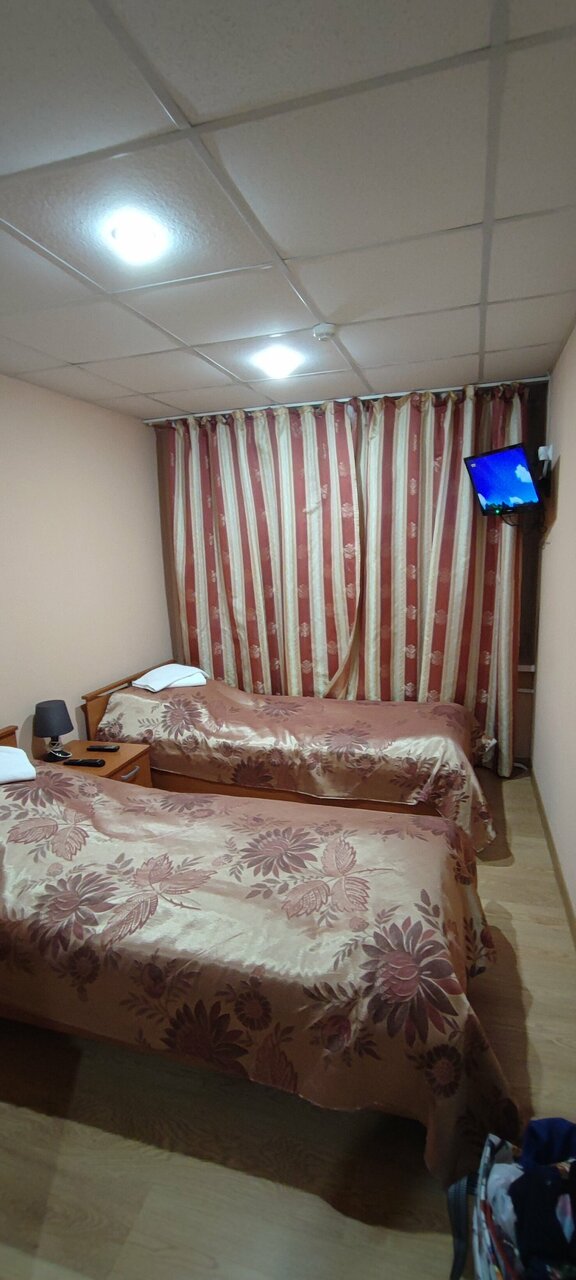 Номер с тремя раздельными кроватями. В номере шкаф, телевизор. Размещение детей до 5 лет бесплатно. Можно с животными за доп. плату.
