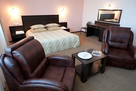 Люкс – максимально насладитесь элитным отдыхом! Двухкомнатный номер площадью 60 кв. м. передающий всю атмосферу роскоши и домашнего тепла, с гостиной зоной и спальней, не оставит Вас равнодушным. Спокойный, ласковый дизайн, большая терраса