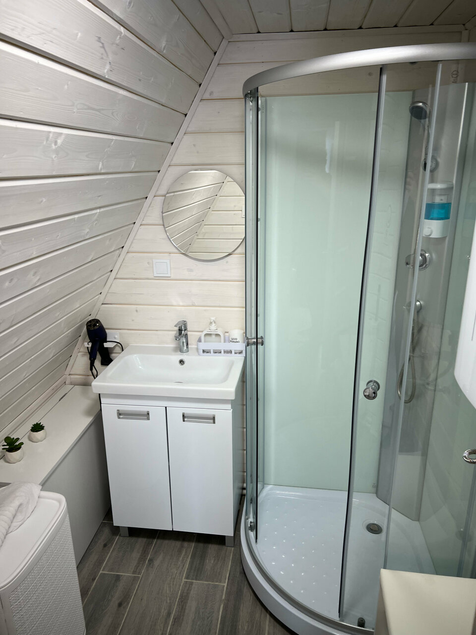 Отдыхали в домике А-фрейм (5 человек). Всё очень понравилось. Всё новое, в доме чисто, тепло, уютно. Продумано всё до мелочей (вазочки, салфеточки, тапочки, зубные щётки…) даже соль и перец в симпатичных мельничках. Очень вежливый персонал. Алексей, Иринаспасибо вам за всё . Бассейн тоже понравился, отлично провели время. Обязательно ещё вернемся.