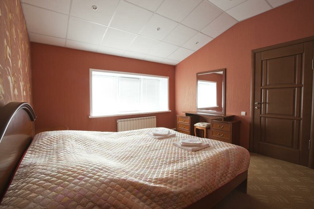 Просторный двухместный номер с большой кроватью + диван, спутниковым телевидением (ТРИКОЛОР), бесплатный WI-FI, холодильником, туалетной комнатной и душевой, средствами индивидуальной гигиены (шампунь, гель для душа, мыло ) комплект полотенец