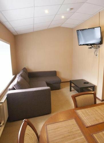 Просторный 2-ух комнатный номер: гостиная и спальня, с кондиционером, спутниковым телевидением, бесплатный WI-FI, холодильником , туалетной комнатной с душевой кабиной, средствами индивидуальной гигиены, тапочки, комплект полотенец