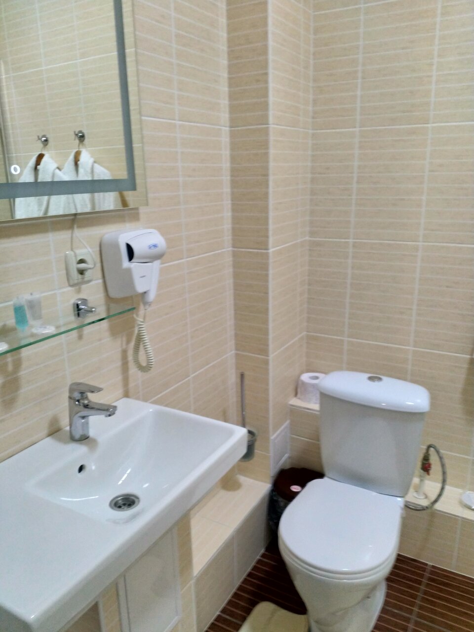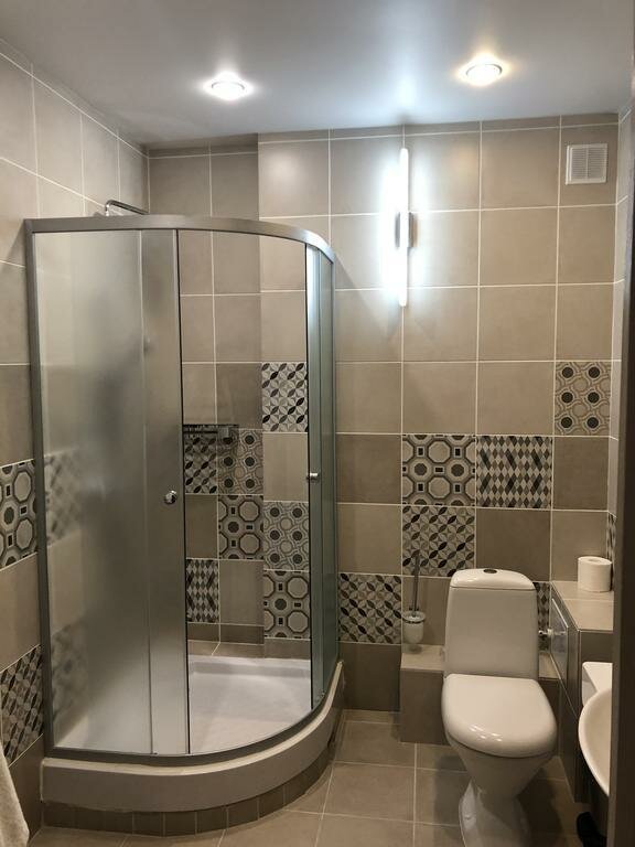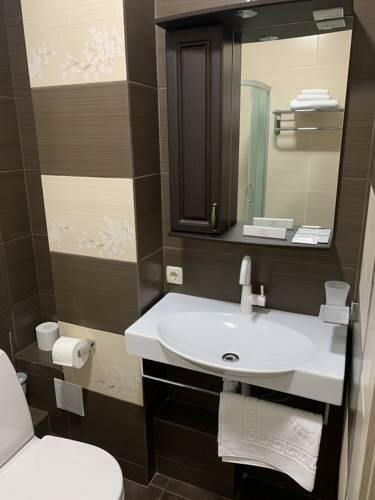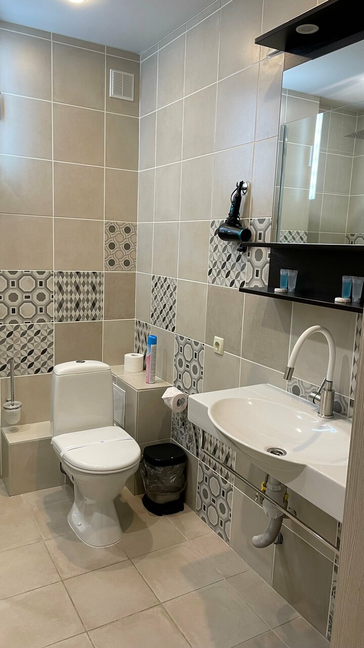 В гостинице все очень чисто. Персонал приветливый, всем необходимым снабдил. Завтрак хороший. В душевой кабине не хватает полочки для банных принадлежностей. В номерах отсутствуют холодильники.