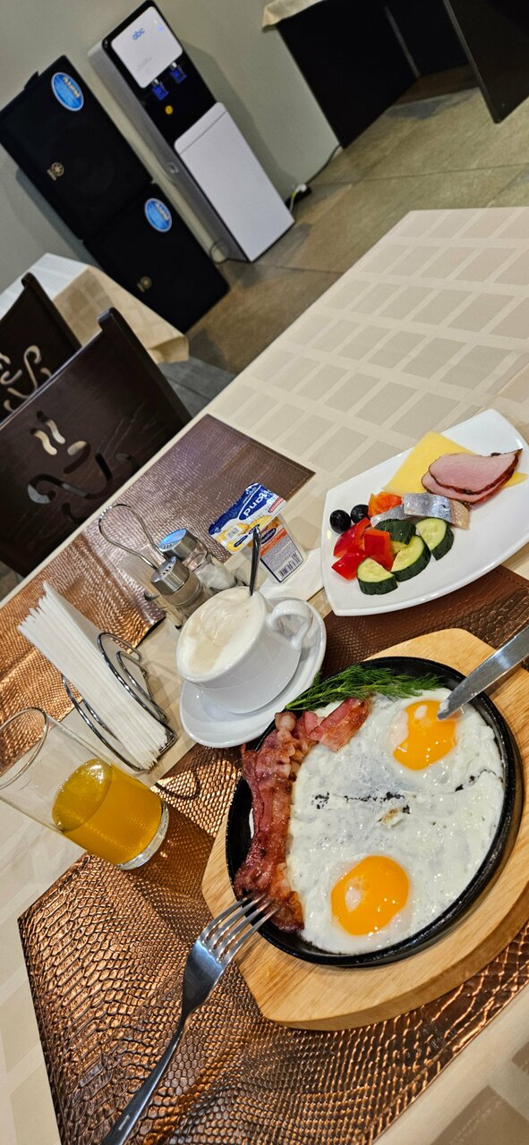 Хорошая гостиница, мне есть с чем сравнивать, мотаюсь часто и много. Завтрак вкусный, основное длдо выбираешь заранее, а всякие сыры, колбасы, овощи, напитки — шведским столом